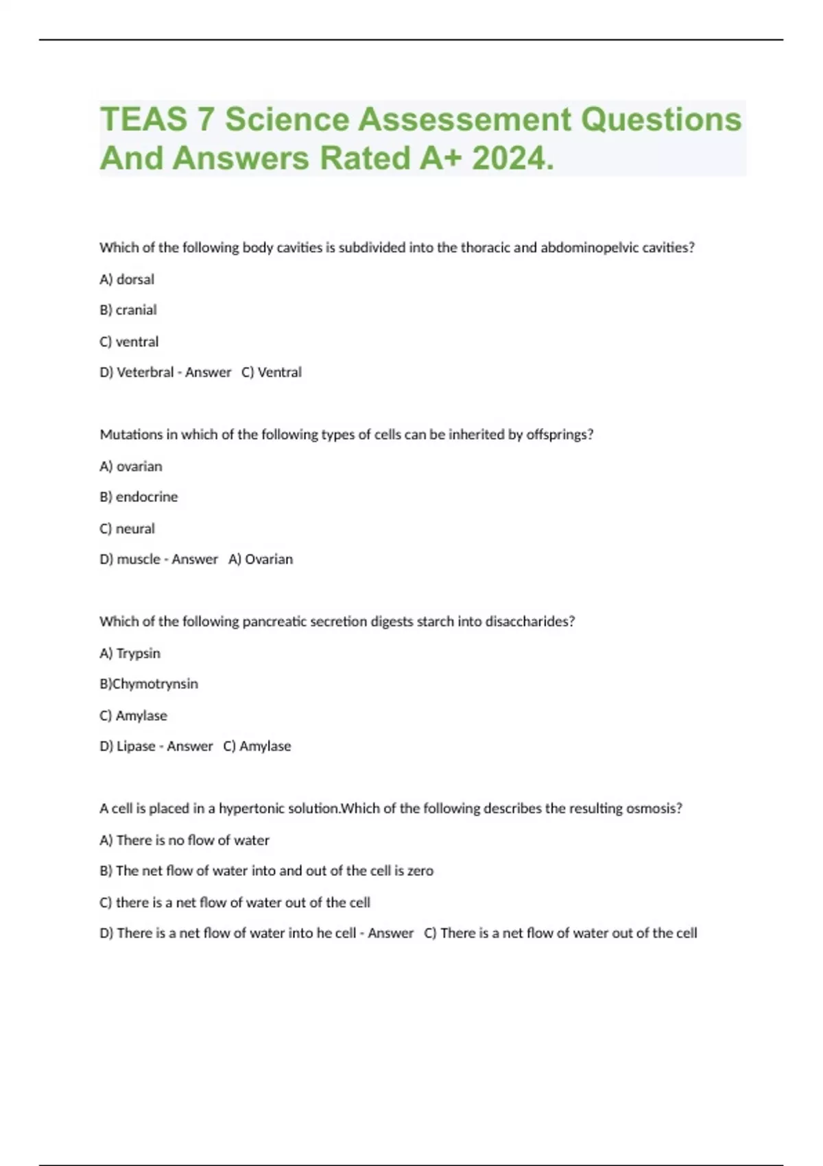 TEAS 7 Science Assessement Questions And Answers Rated A+ 2024.