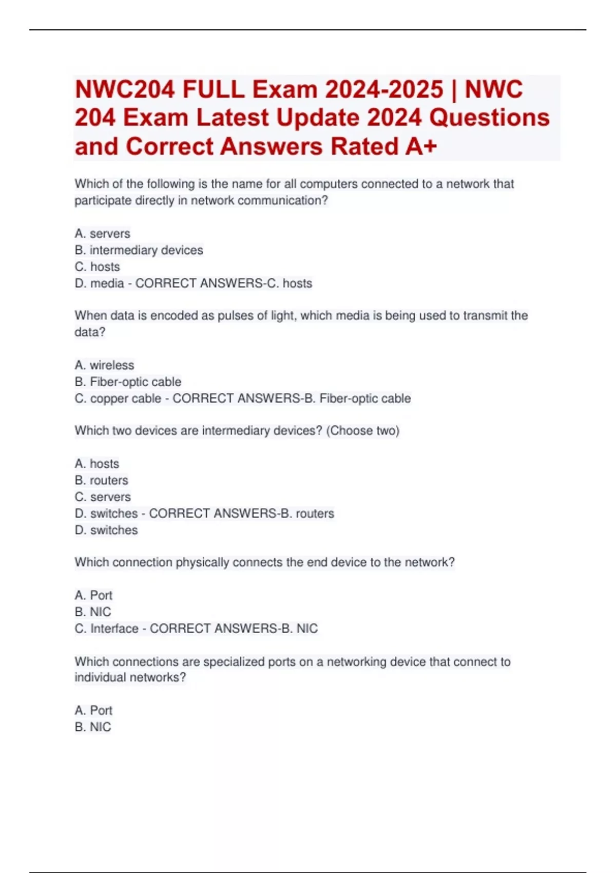 NWC204 FULL Exam | NWC 204 Exam Latest Update 2024 Questions and Correct Answers Rated A+