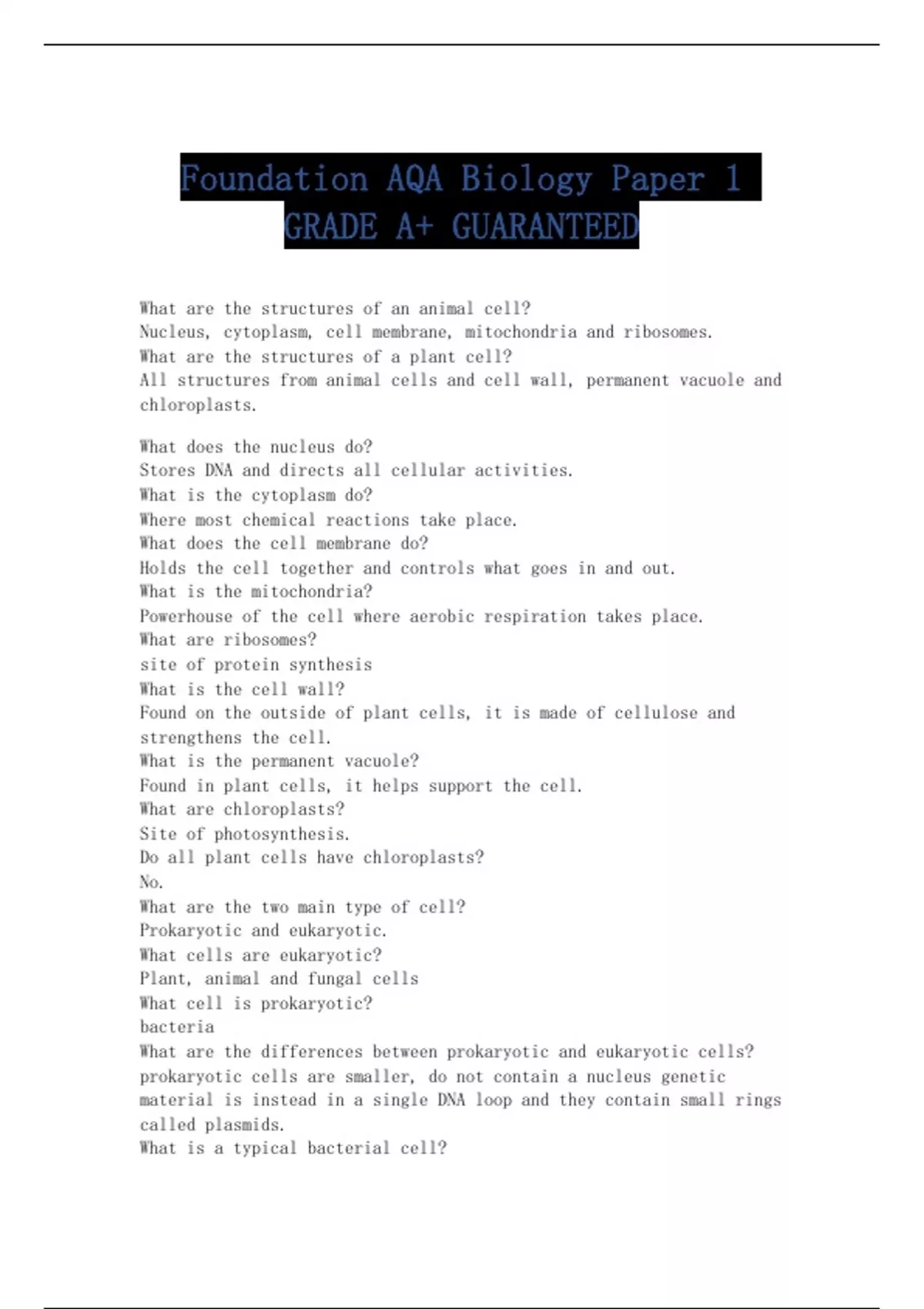 Nucleus, cytoplasm, cell membrane, mitochondria and ribosomes.