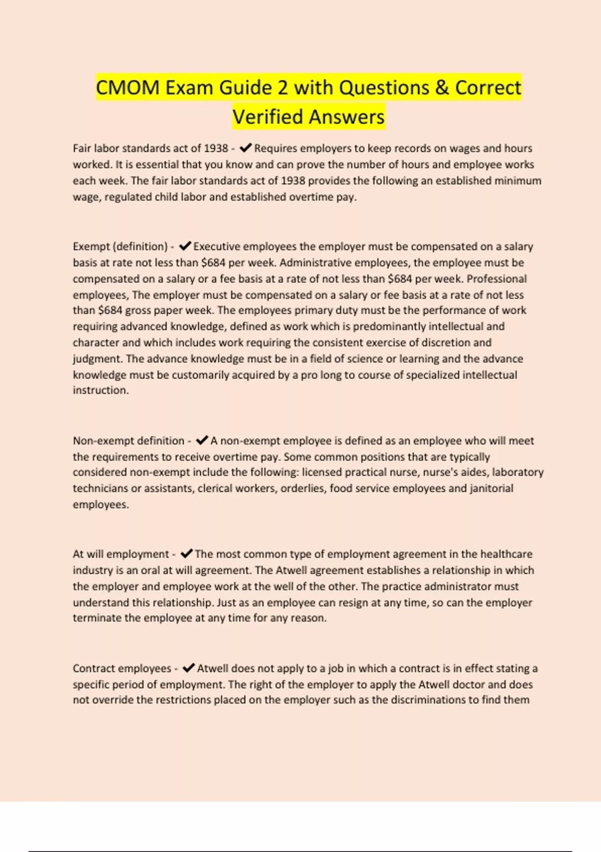 CMOM Exam Guide 2 with Questions & Correct Verified Answers