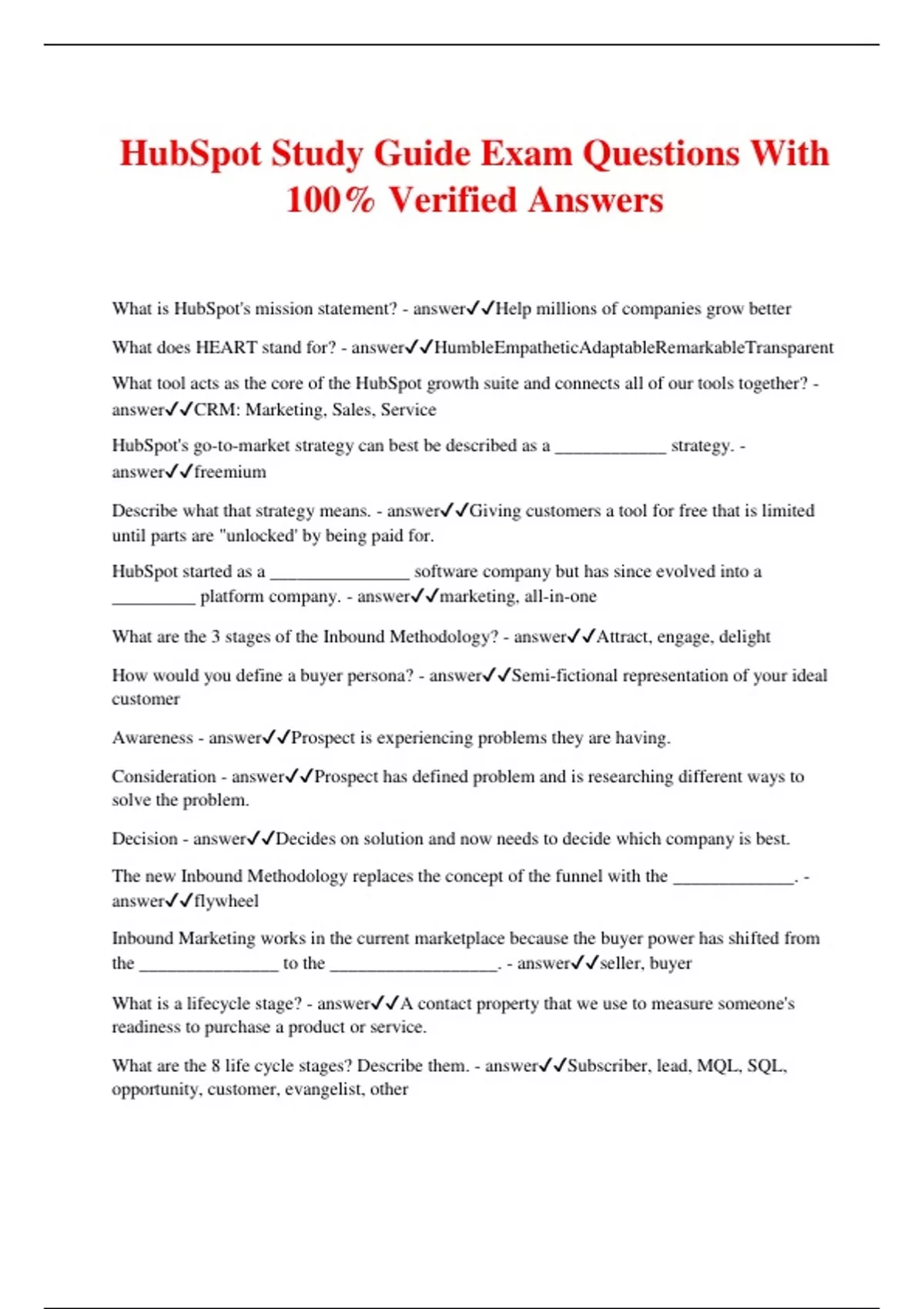 HubSpot Study Guide Exam Questions With 100% Verified Answers
