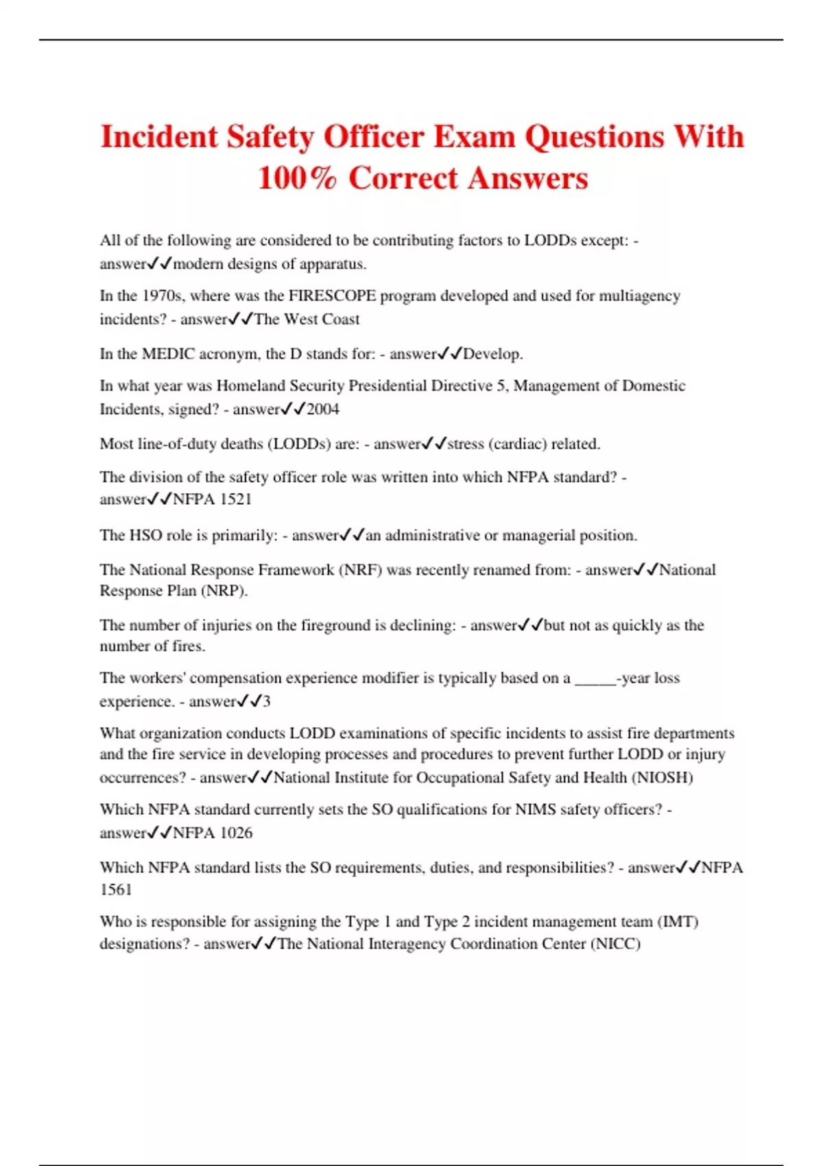 Incident Safety Officer Exam Questions With 100% Correct Answers