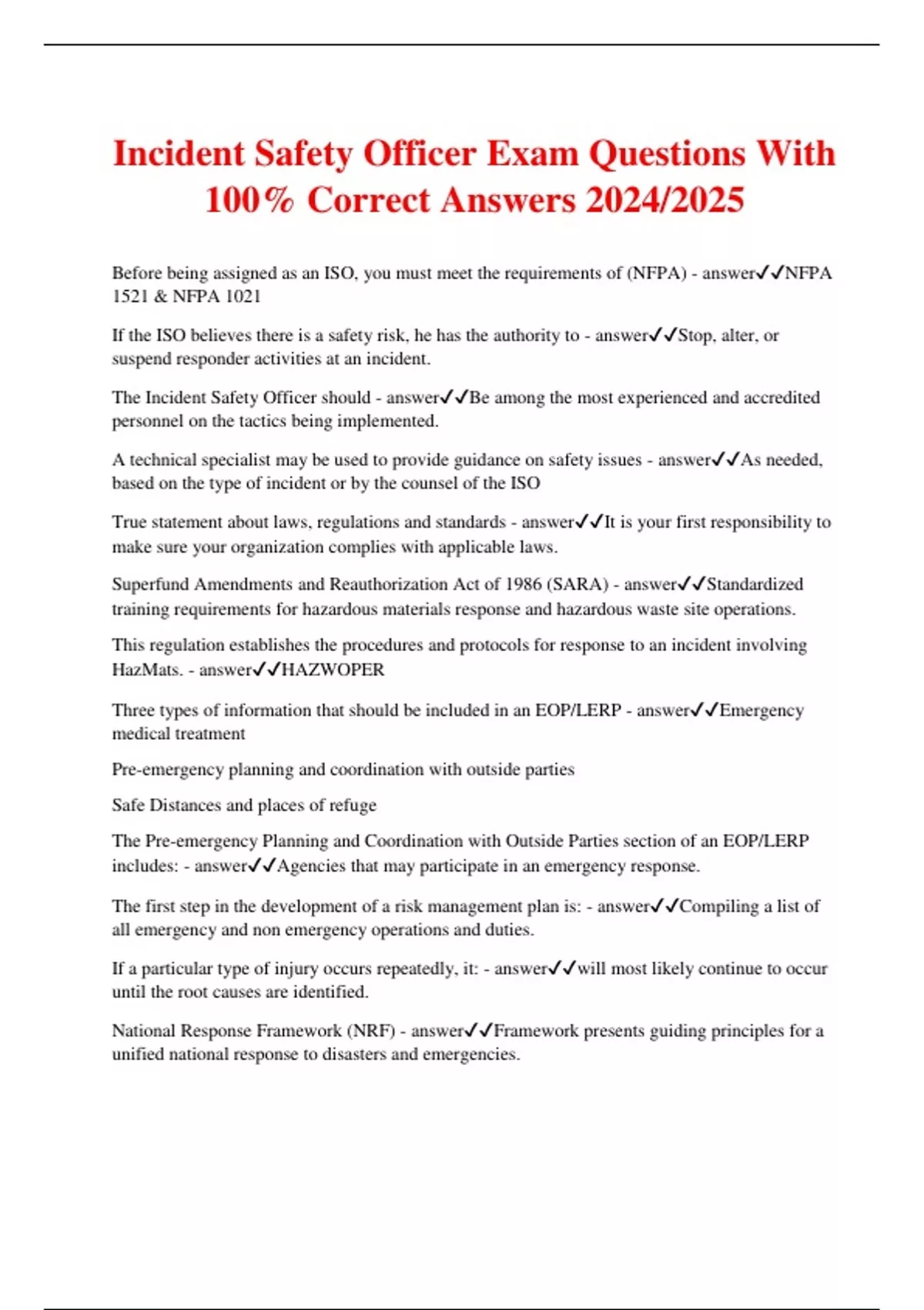 Incident Safety Officer Exam Questions With 100% Correct Answers 2024/2025