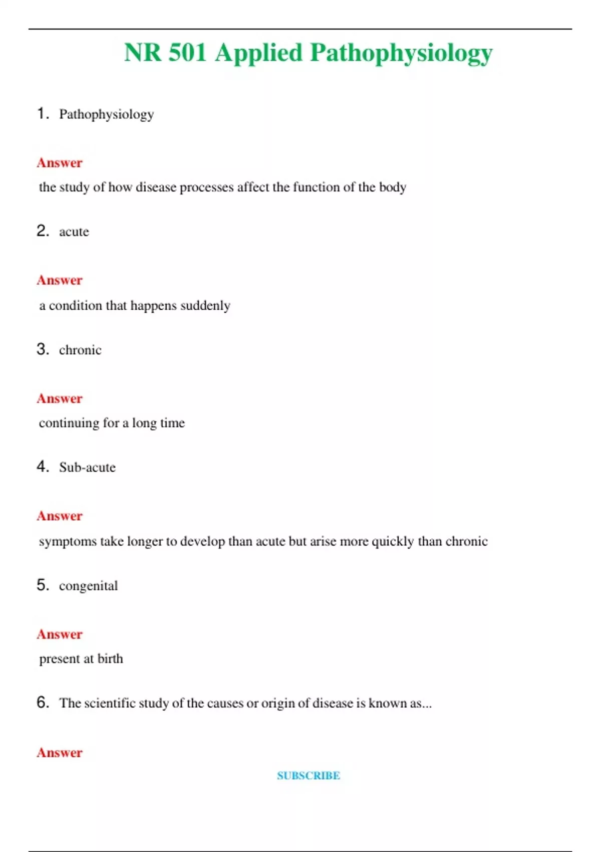 NR 501 Applied Pathophysiology (Latest 2024 / 2025) Questions & Answers with rationales