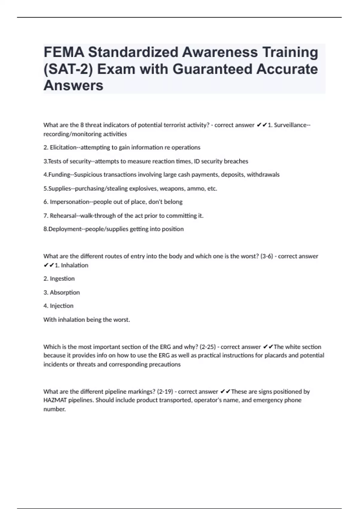 FEMA Standardized Awareness Training (SAT-2) Exam with Guaranteed Accurate Answers
