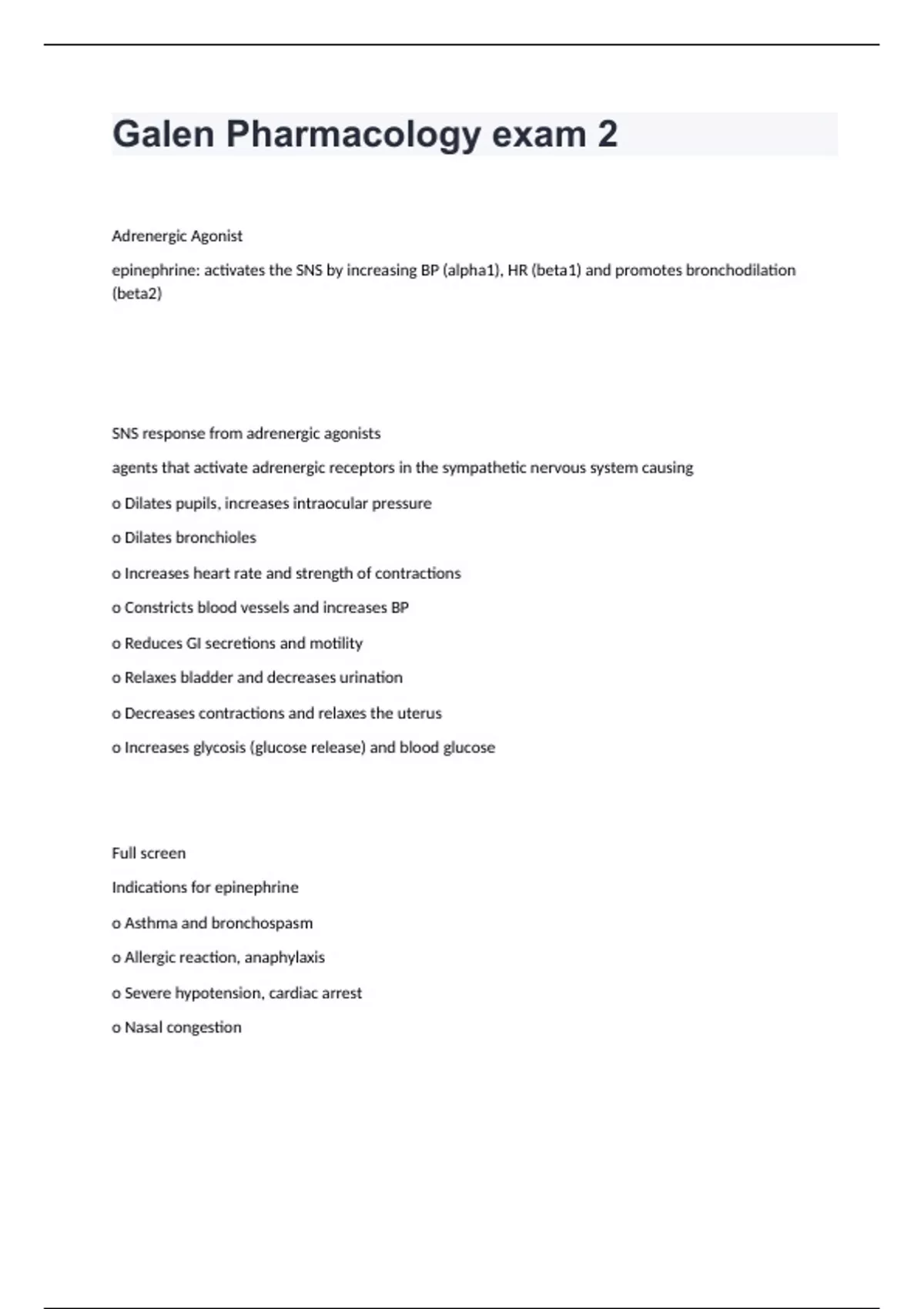 Galen Pharmacology exam 2 fully solved 2024/2025