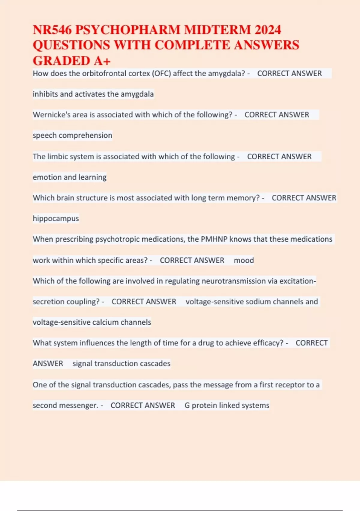 NR546 PSYCHOPHARM MIDTERM 2024 QUESTIONS WITH COMPLETE ANSWERS GRADED A+