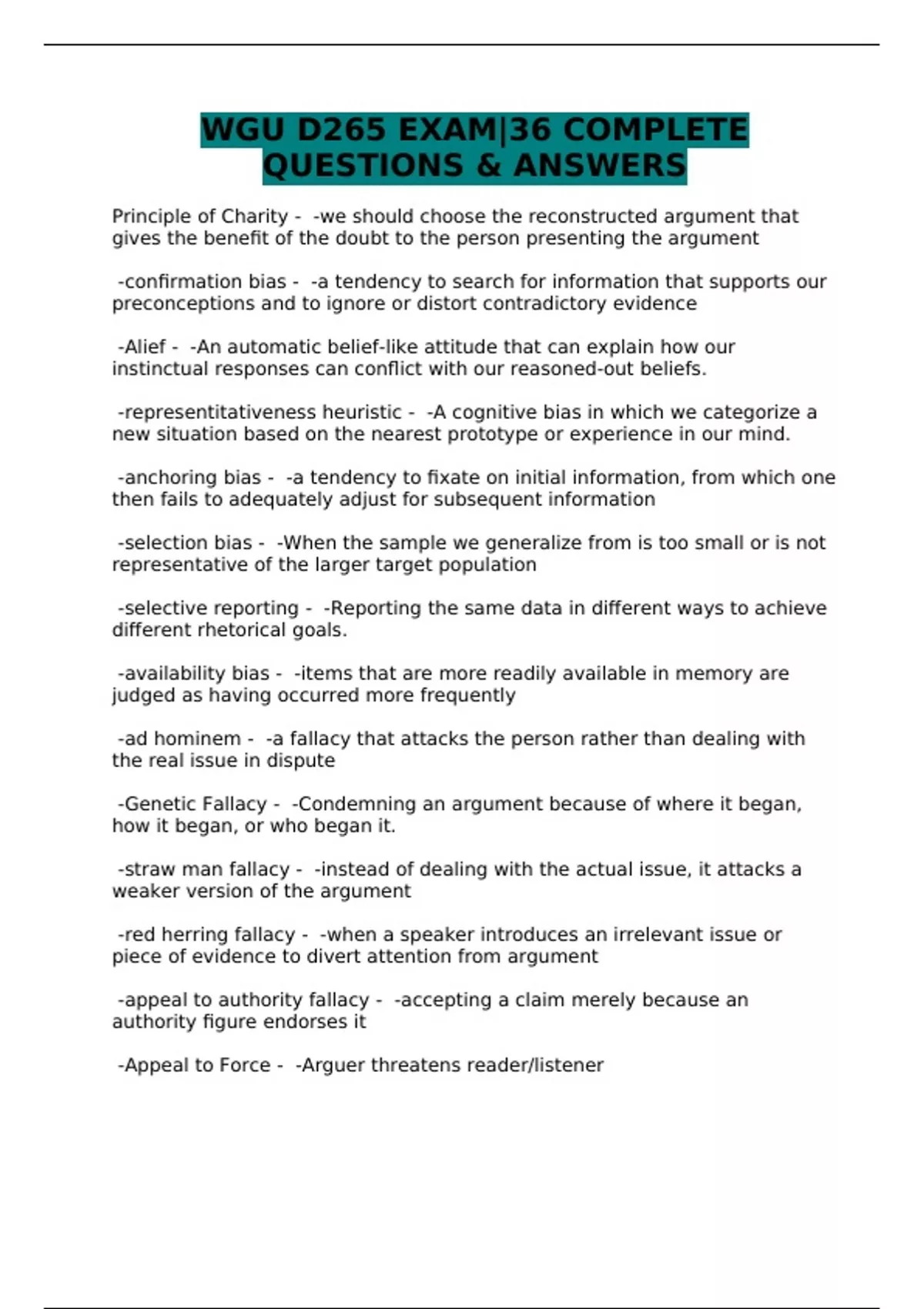 WGU D265 EXAM|36 COMPLETE QUESTIONS & ANSWERS