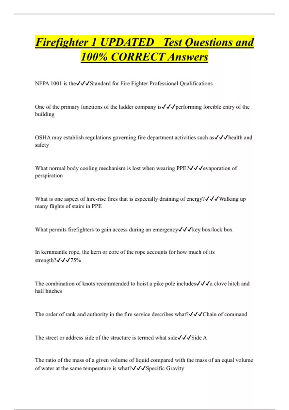firefighter 1 updated test questions and 100 cor