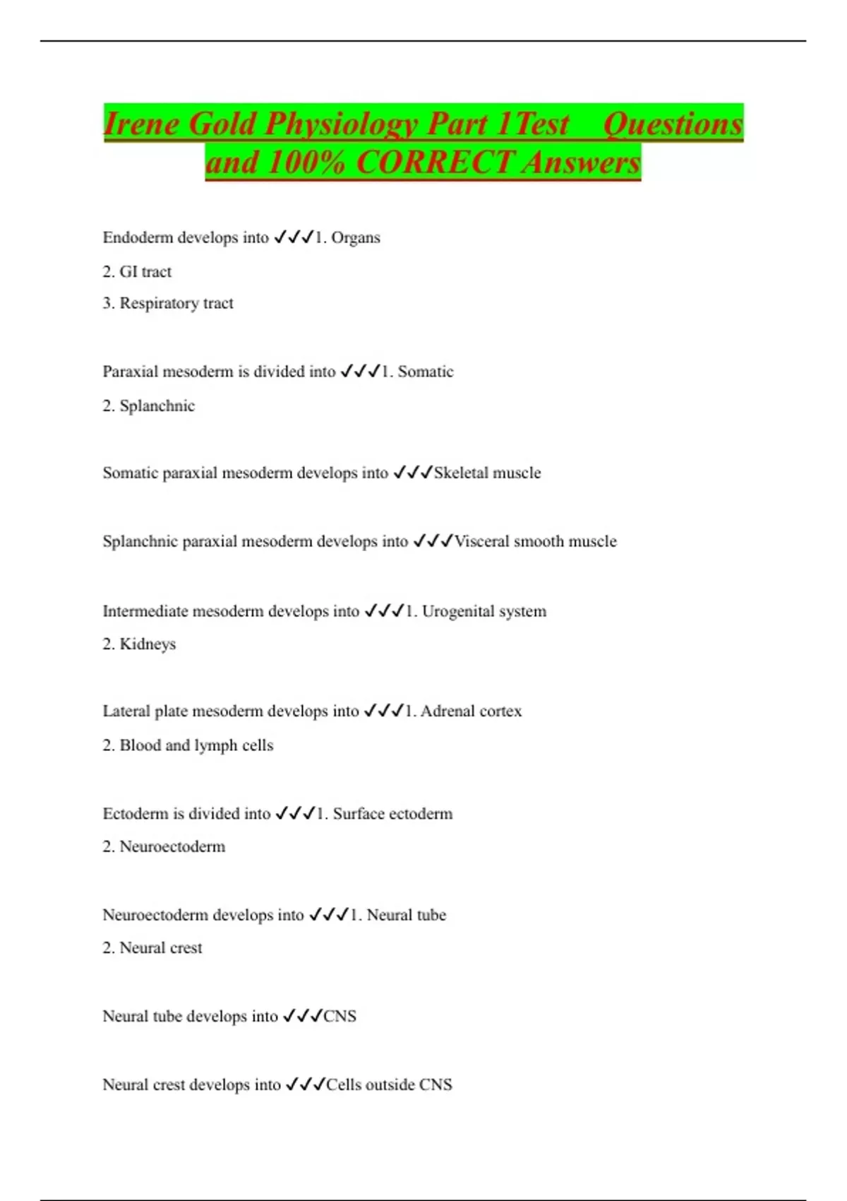 Irene Gold Physiology Part 1Test Questions and 100% CORRECT Answers