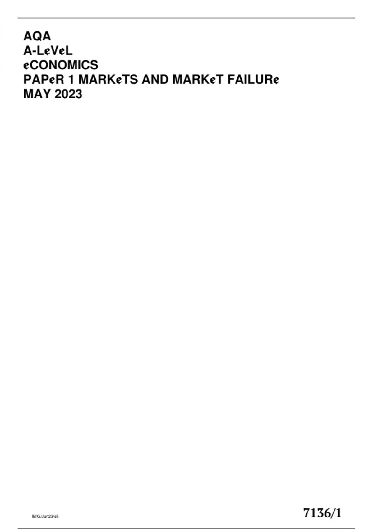 AQA a-level economics paper 1 markets and market failure may 2023