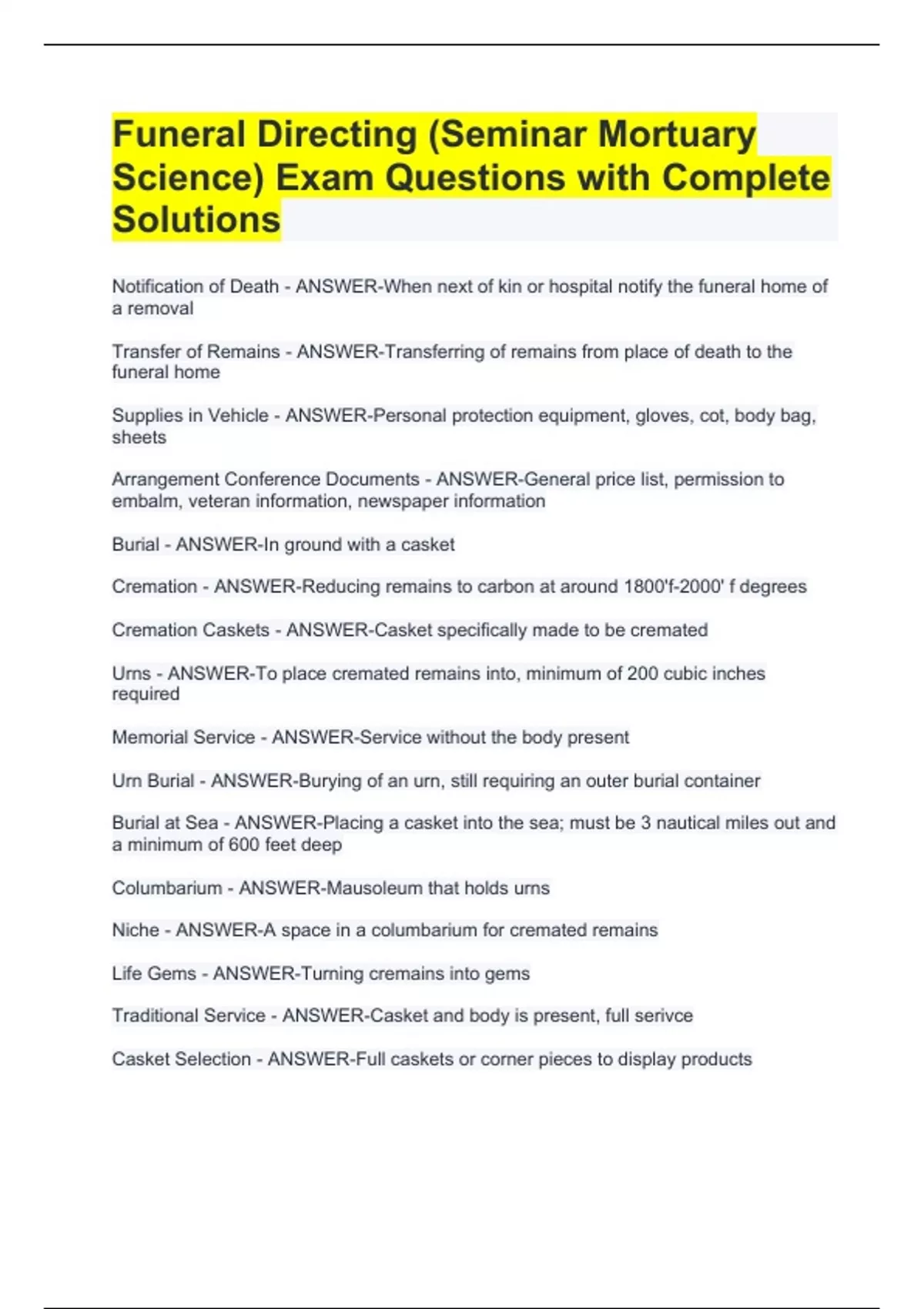 Funeral Directing (Seminar Mortuary Science) Exam Questions with Complete Solutions
