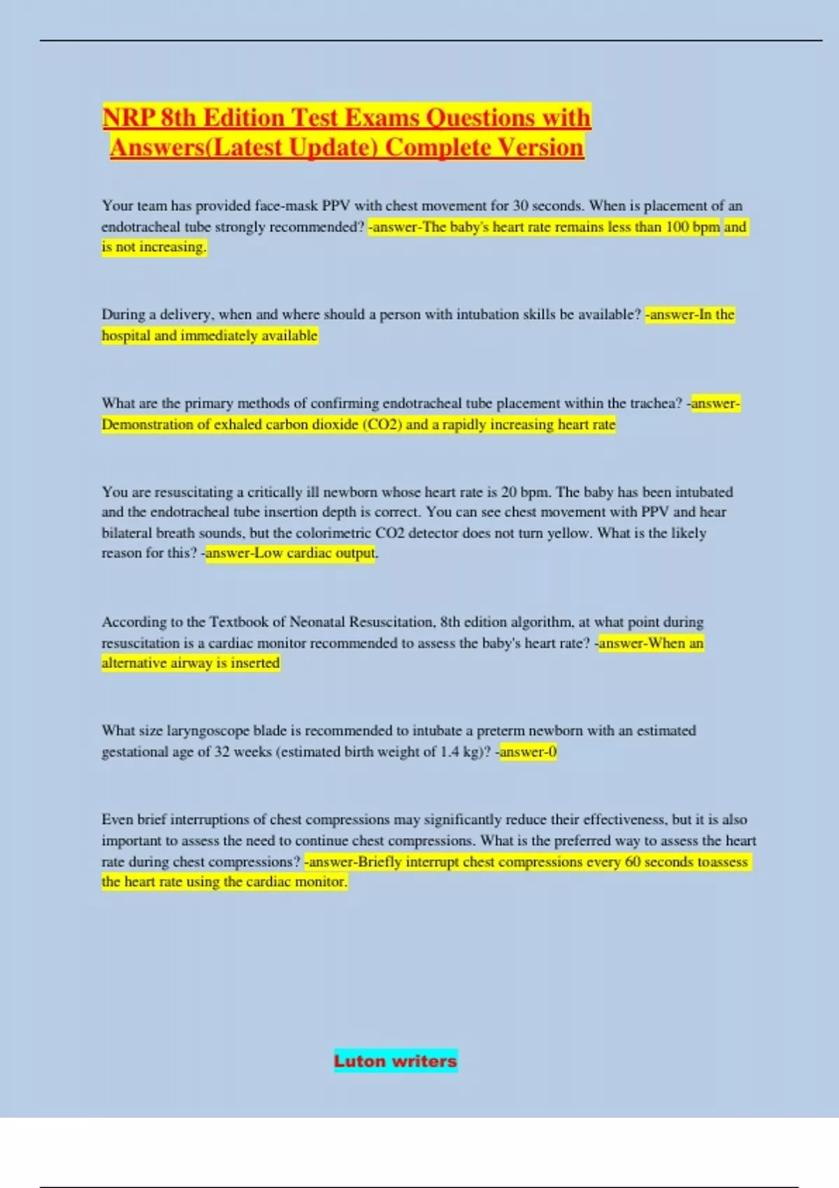 nrp 8th edition test exams questions with answers