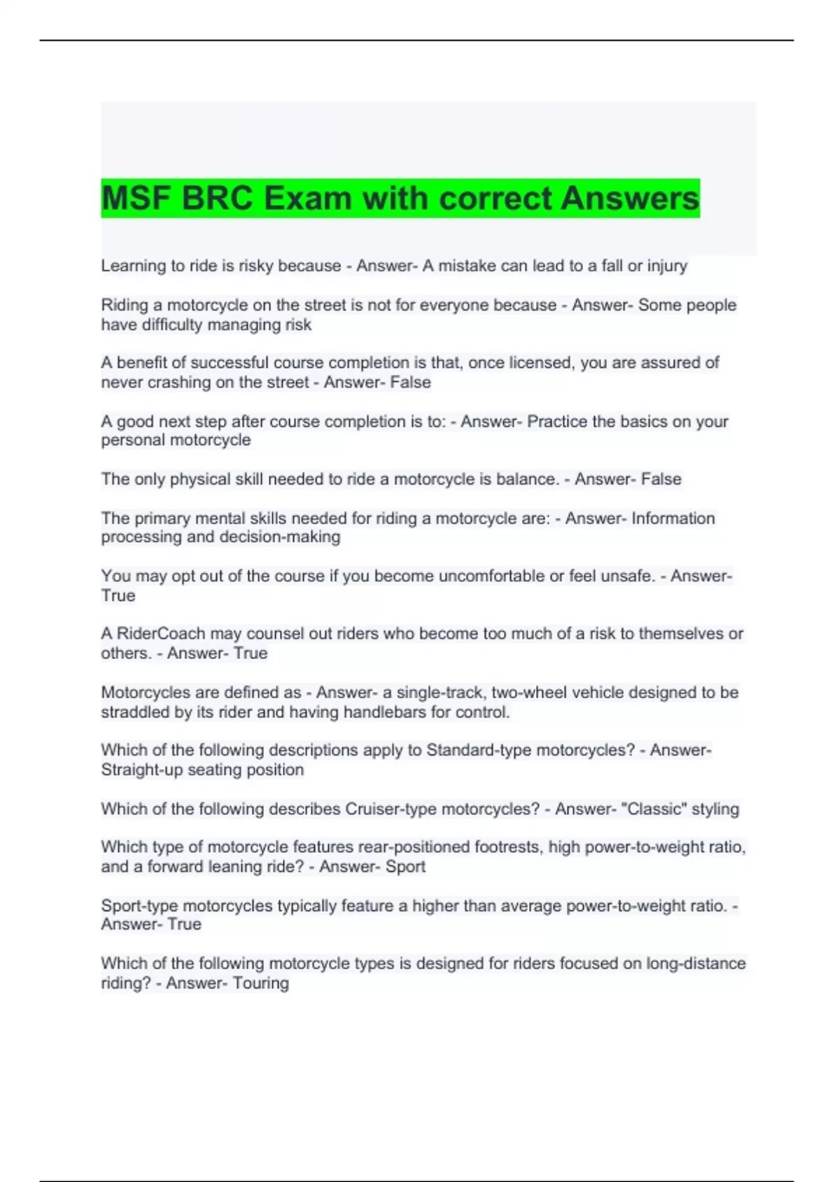 msf brc exam with correct answers