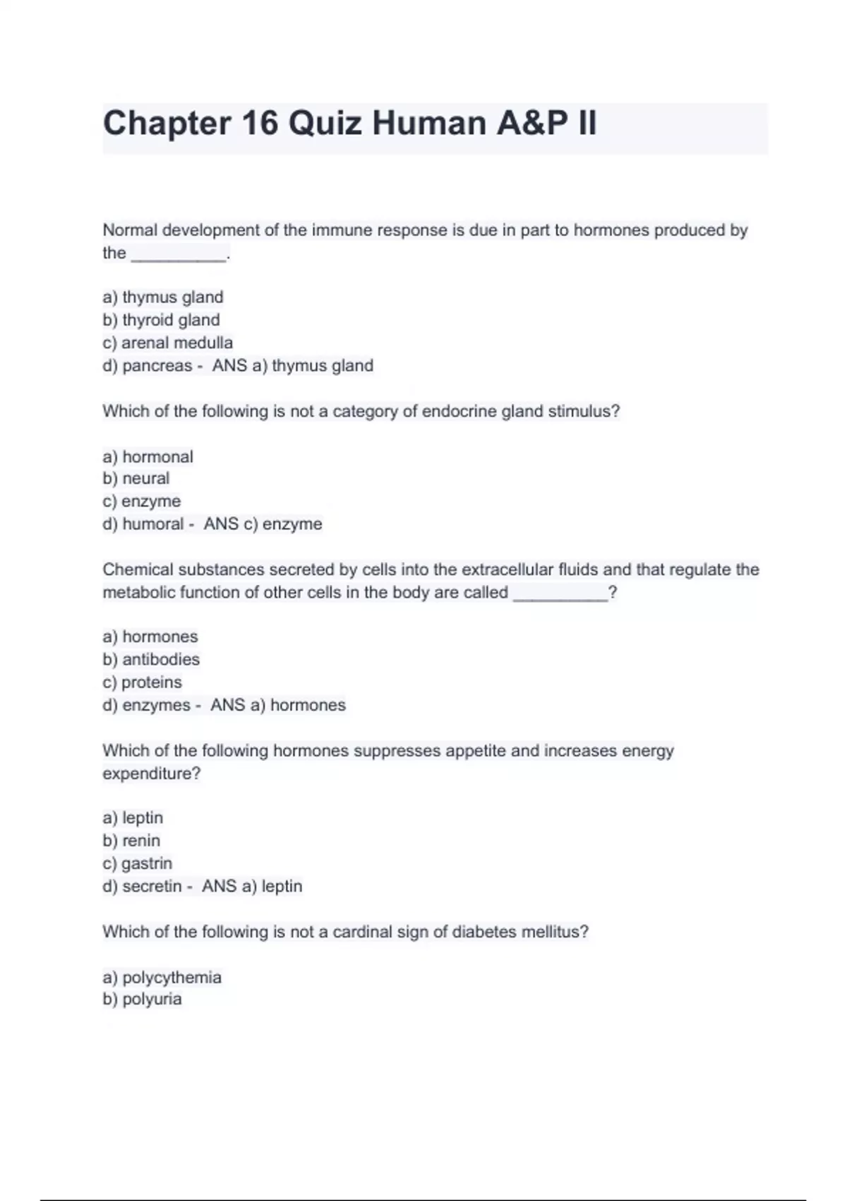 Test Bank For Anatomy and Physiology 2editions Chapter 16 Test Questions and Answers Newest Update (A+ GRADED 100% VERIFIED)