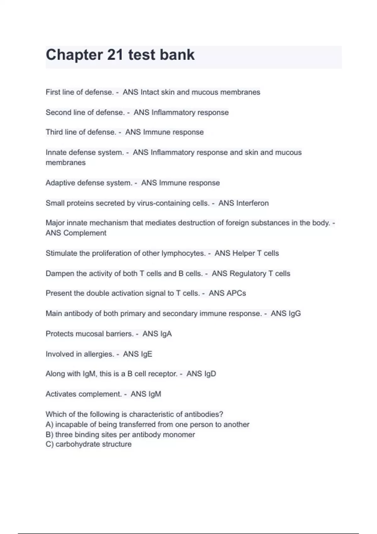 Test Bank For Anatomy and Physiology 2edition Chapter 21 test ,Questions and Answers (A+ GRADED 100% VERIFIED)