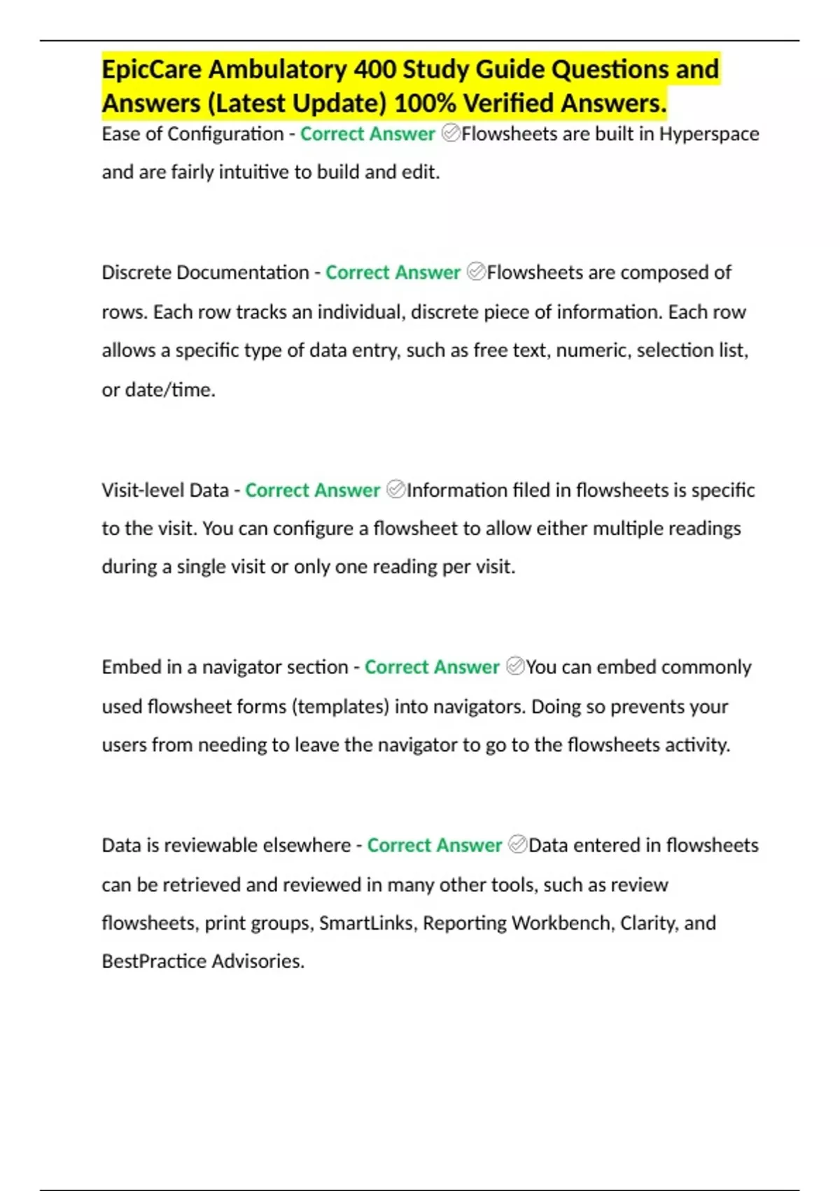 EpicCare Ambulatory 400 Study Guide Questions and Answers (Latest Update) 100% Verified Answers.