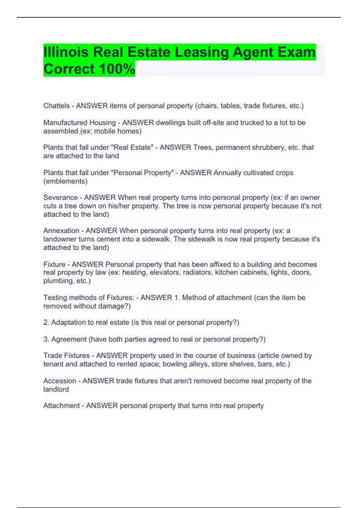 Illinois Real Estate Leasing Agent Exam Correct 100%