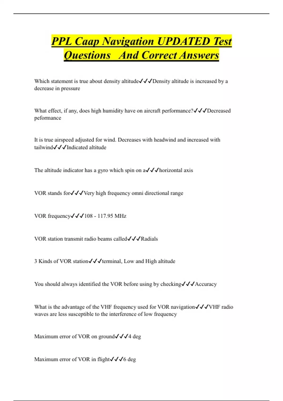 PPL Caap Navigation UPDATED Test Questions And Correct Answers