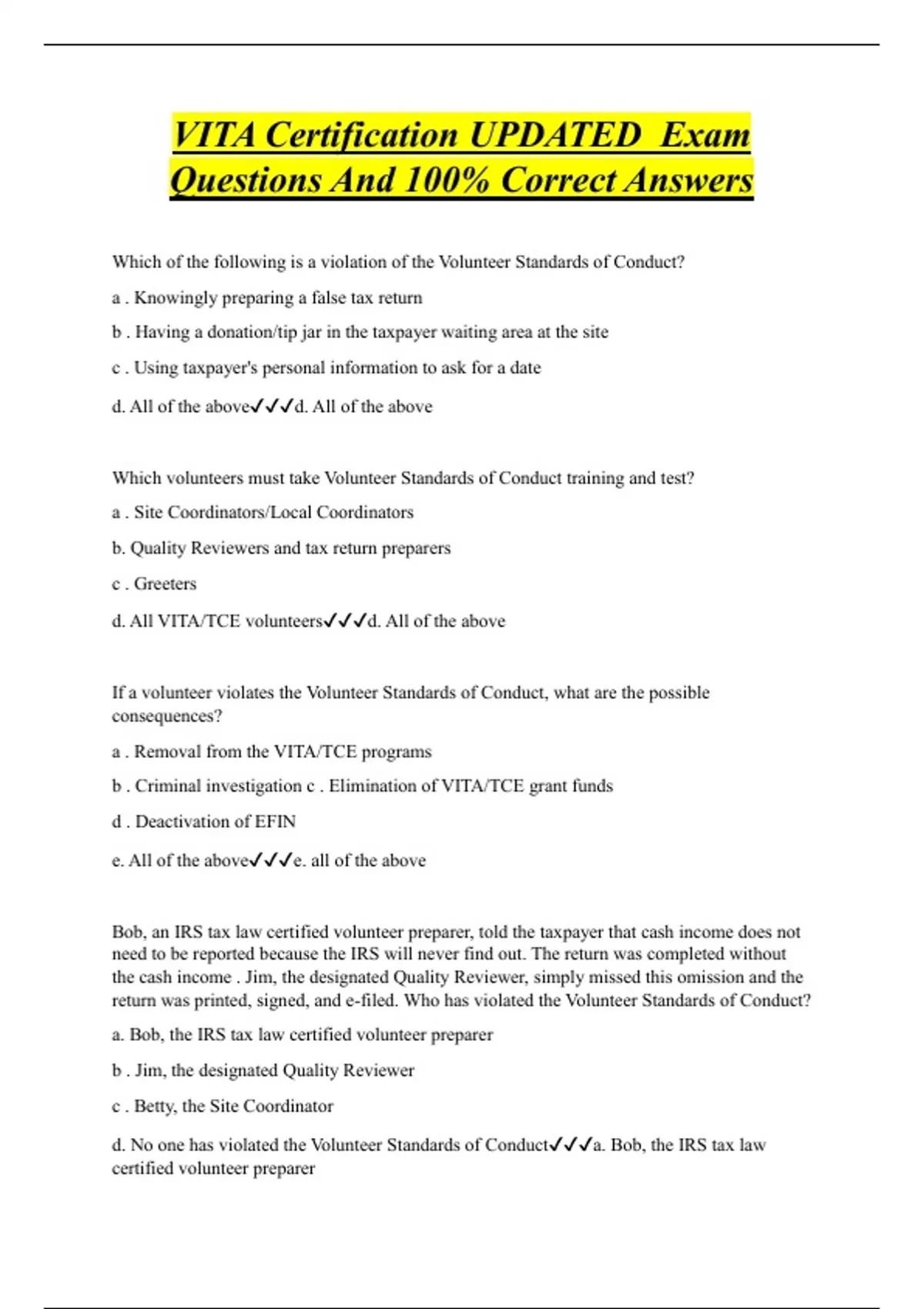 VITA Certification UPDATED Exam Questions And 100% Correct Answers