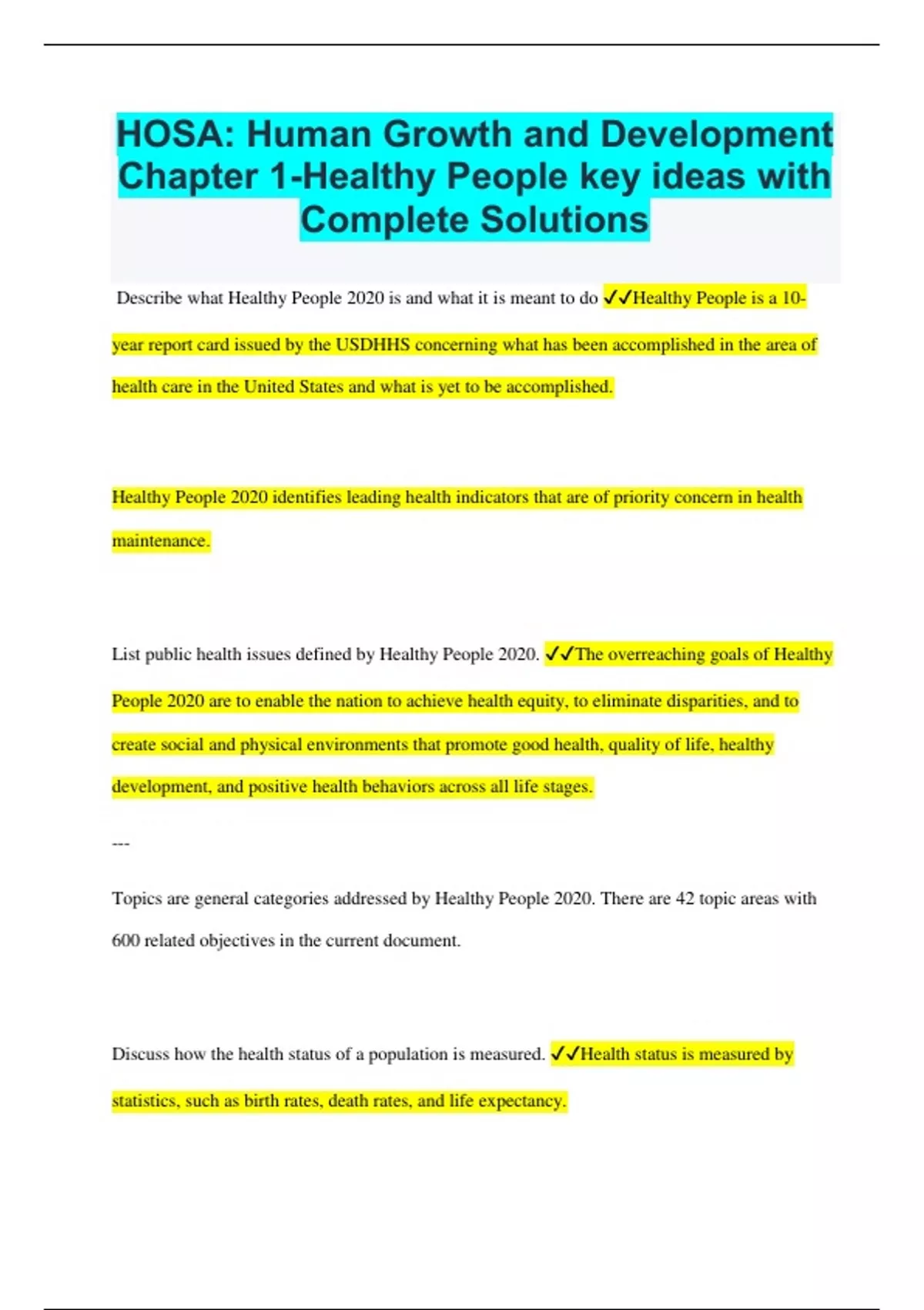 HOSA: Human Growth and Development Chapter 1-Healthy People key ideas with Complete Solutions