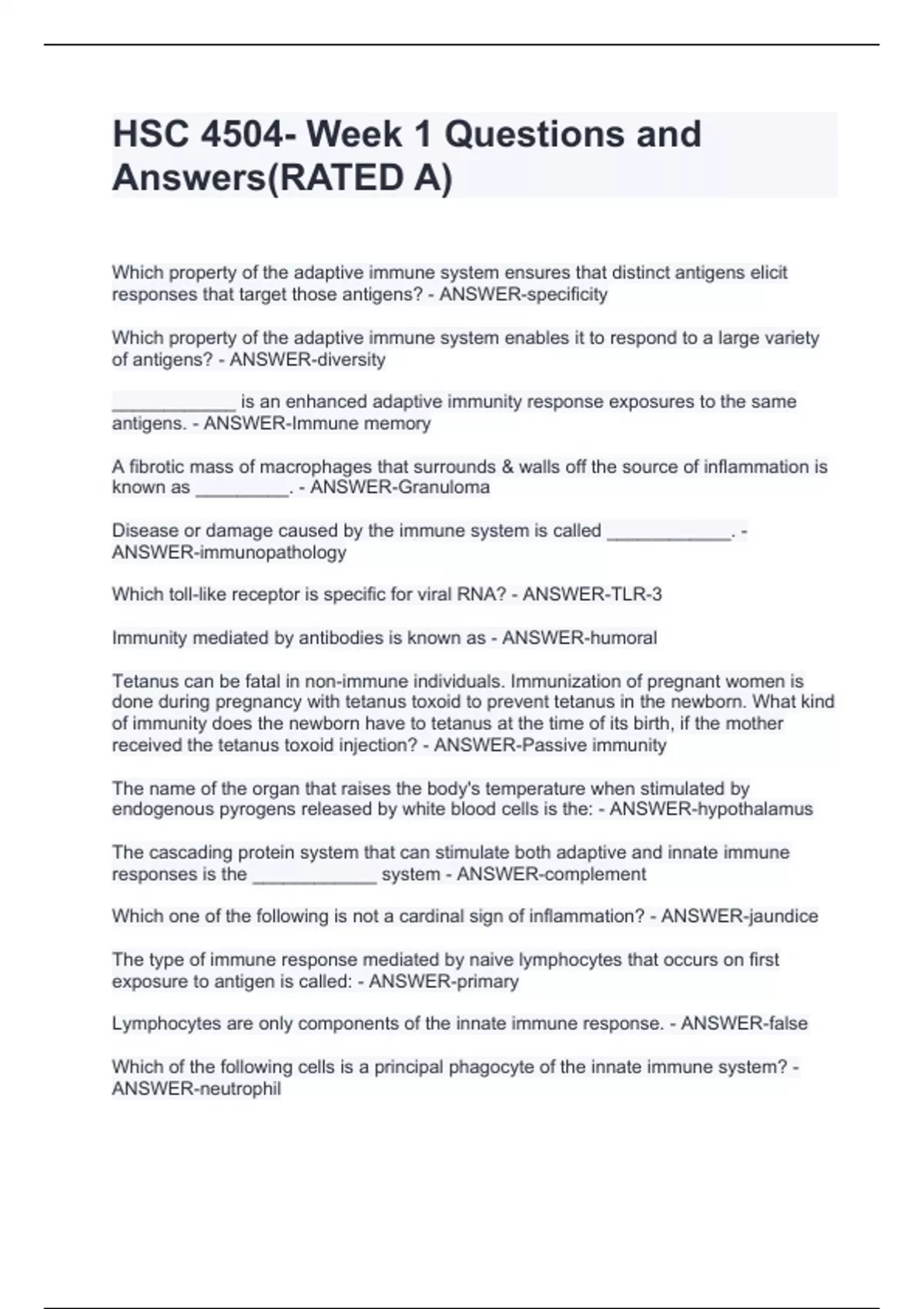 HSC 4504- Week 1 Questions and Answers(RATED A)