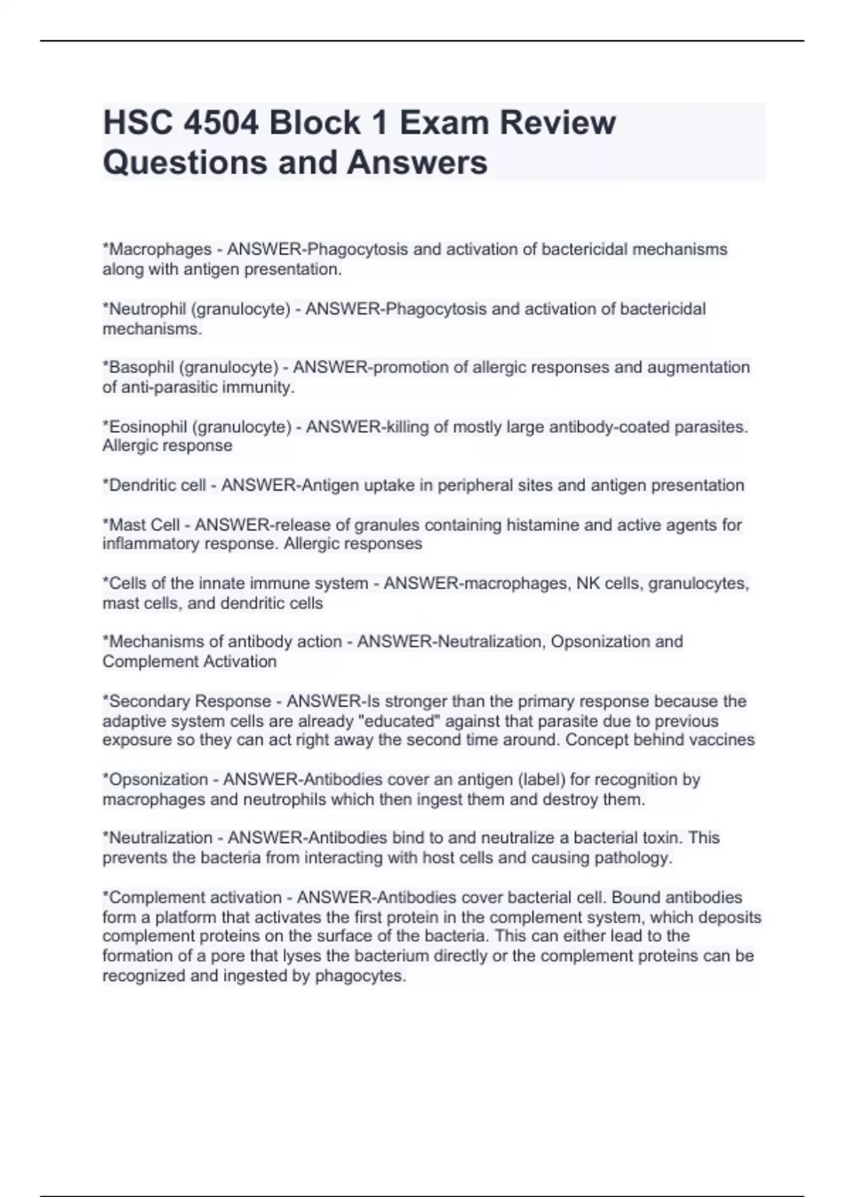 HSC 4504 Block 1 Exam Review Questions and Answers