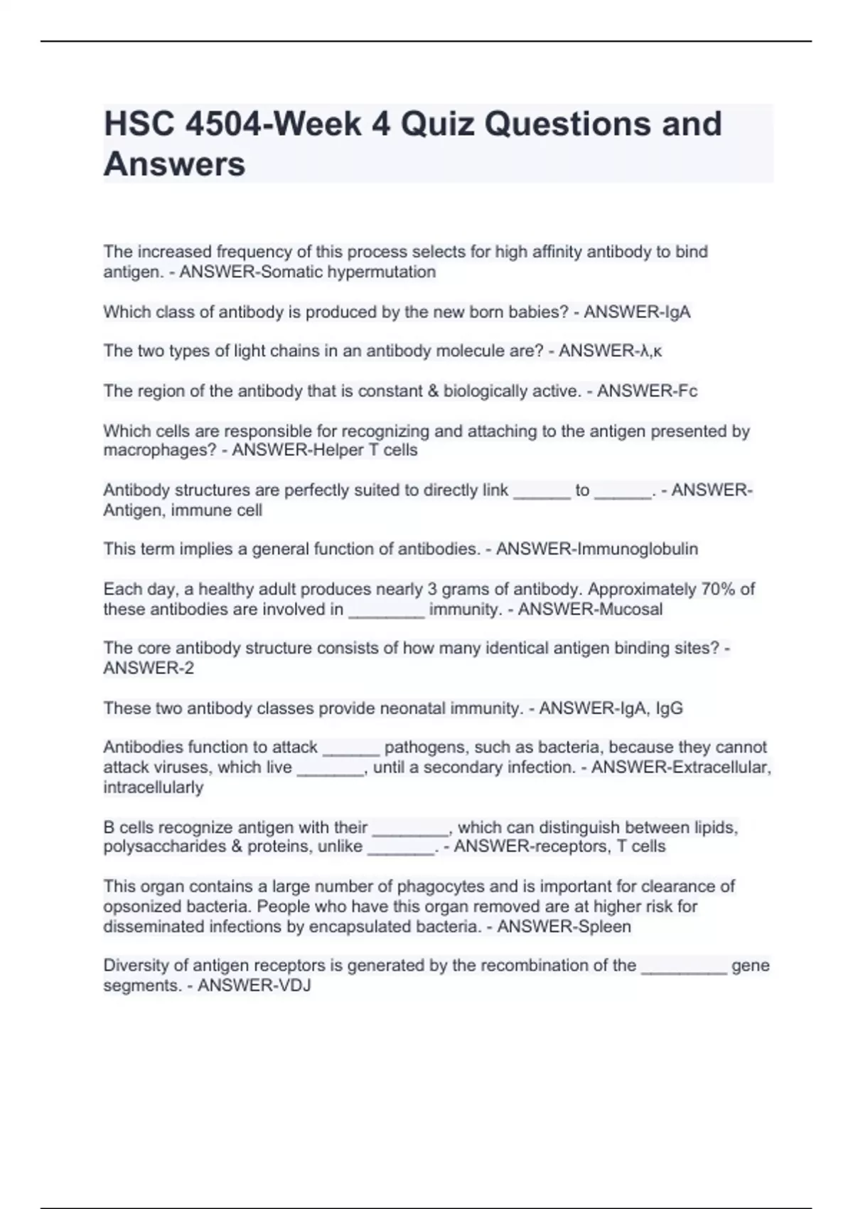 hsc 4504 week 4 quiz questions and answers