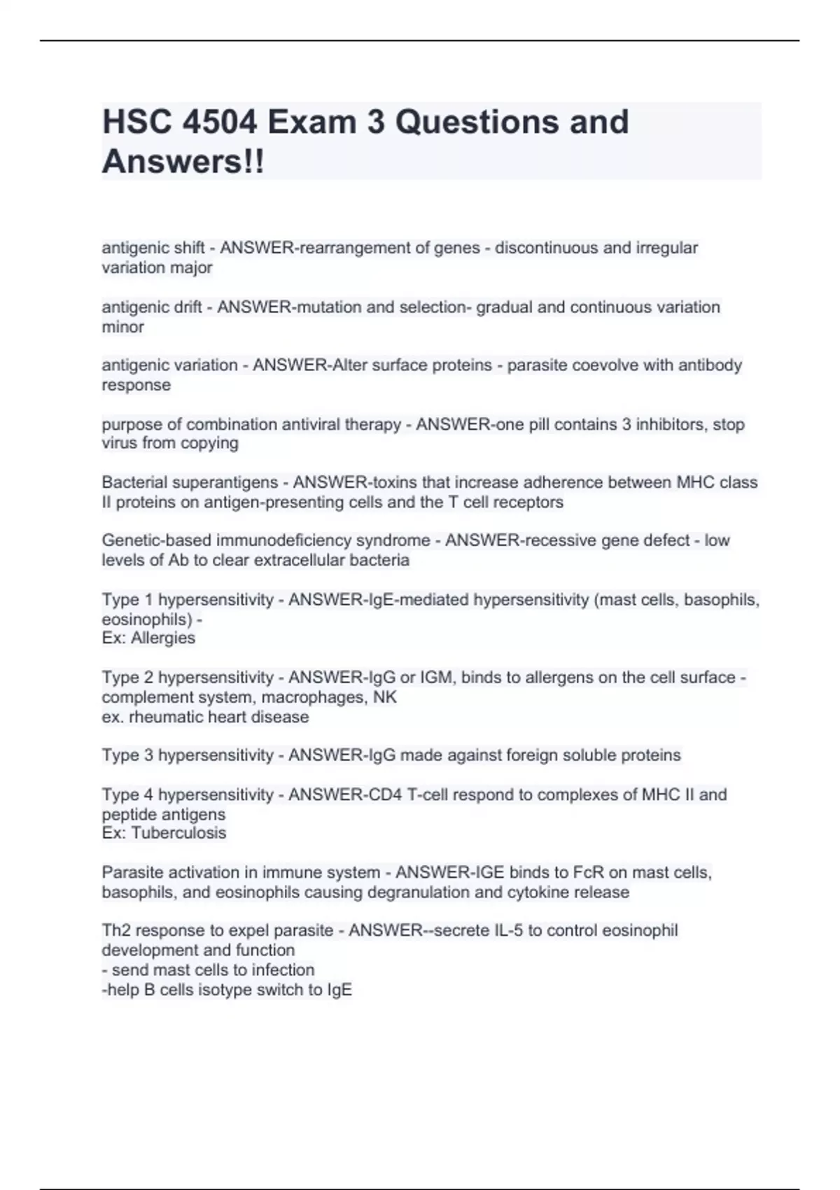HSC 4504 Exam 3 Questions and Answers!!