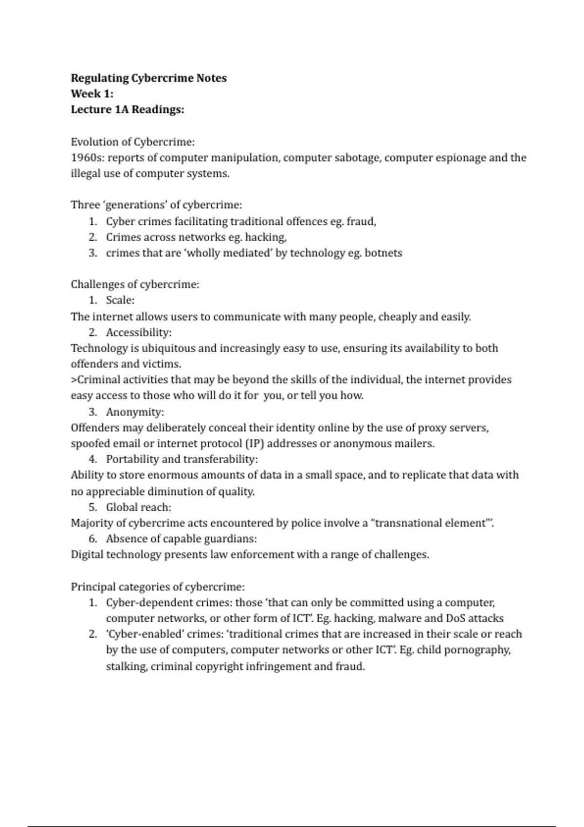 Regulating Cybercrime Notes