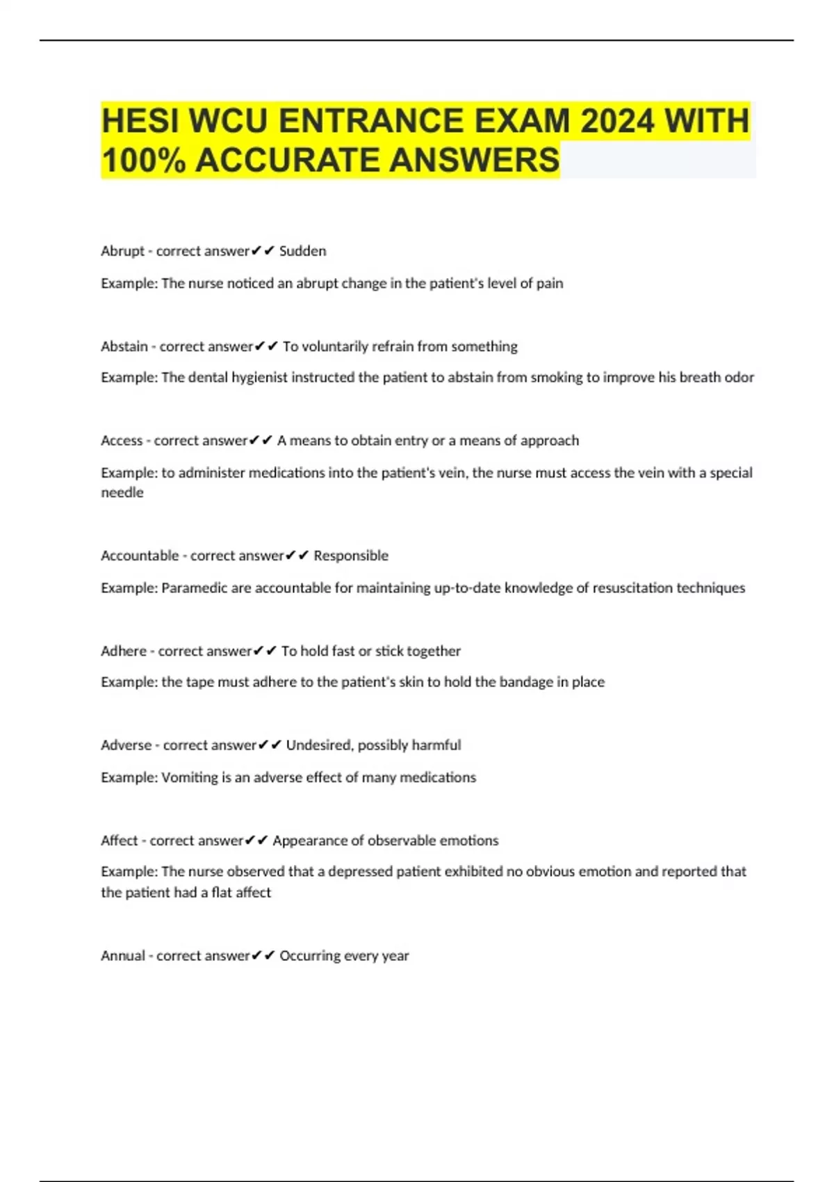 HESI WCU ENTRANCE EXAM 2024 WITH 100% ACCURATE ANSWERS