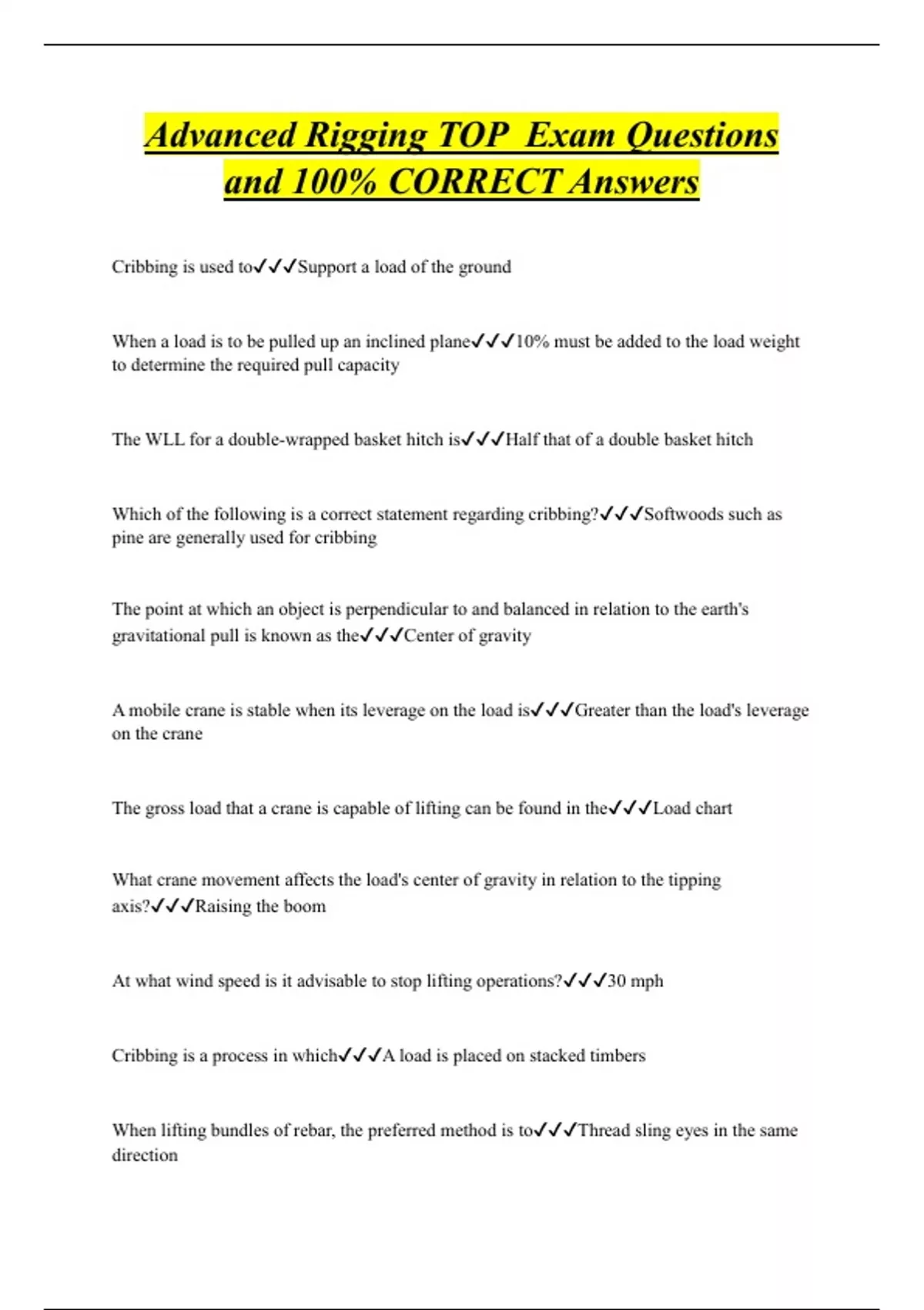 advanced rigging top exam questions and 100 corr