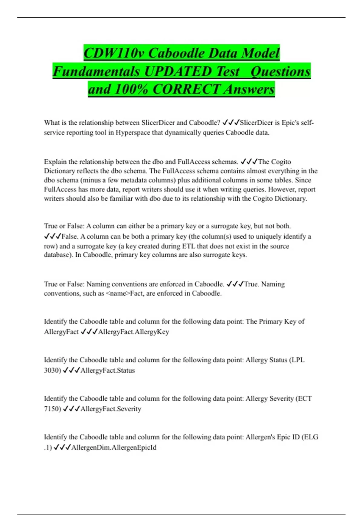 CDW110v Caboodle Data Model Fundamentals UPDATED Test Questions and 100% CORRECT Answers