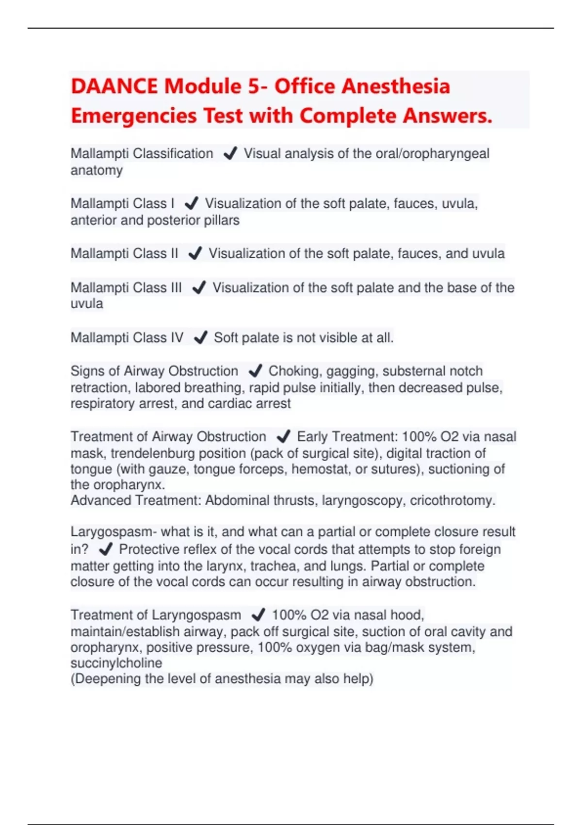 DAANCE Module 5- Office Anesthesia Emergencies Test with Complete Answers | Latest 2024/2025 DAANCE Module 5- Office Anesthesia Emergencies Test with Complete Answers | Latest 2024/2025 DAANCE Module 5- Office Anesthesia Emergencies Test with Complete Answers | Latest 2024/2025