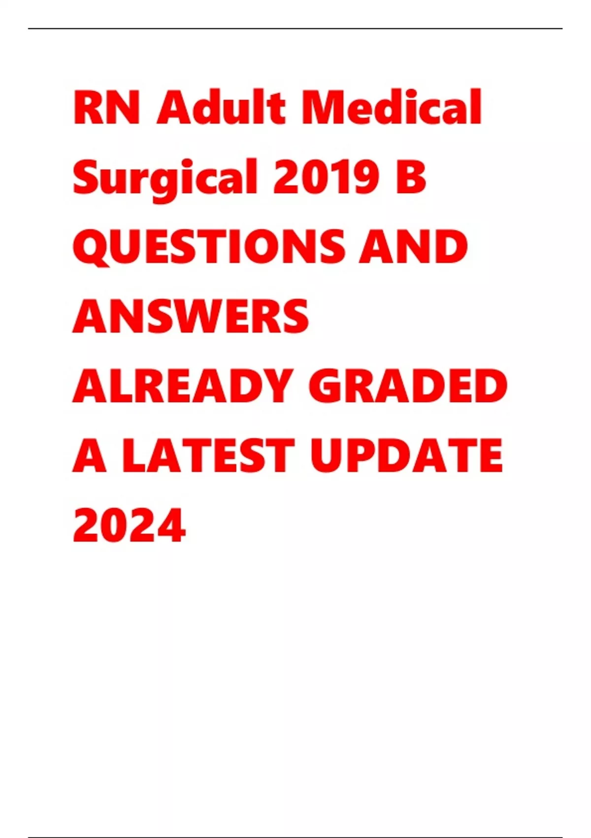 RN Adult Medical Surgical 2019 B QUESTIONS AND ANSWERS ALREADY GRADED A LATEST UPDATE 2024