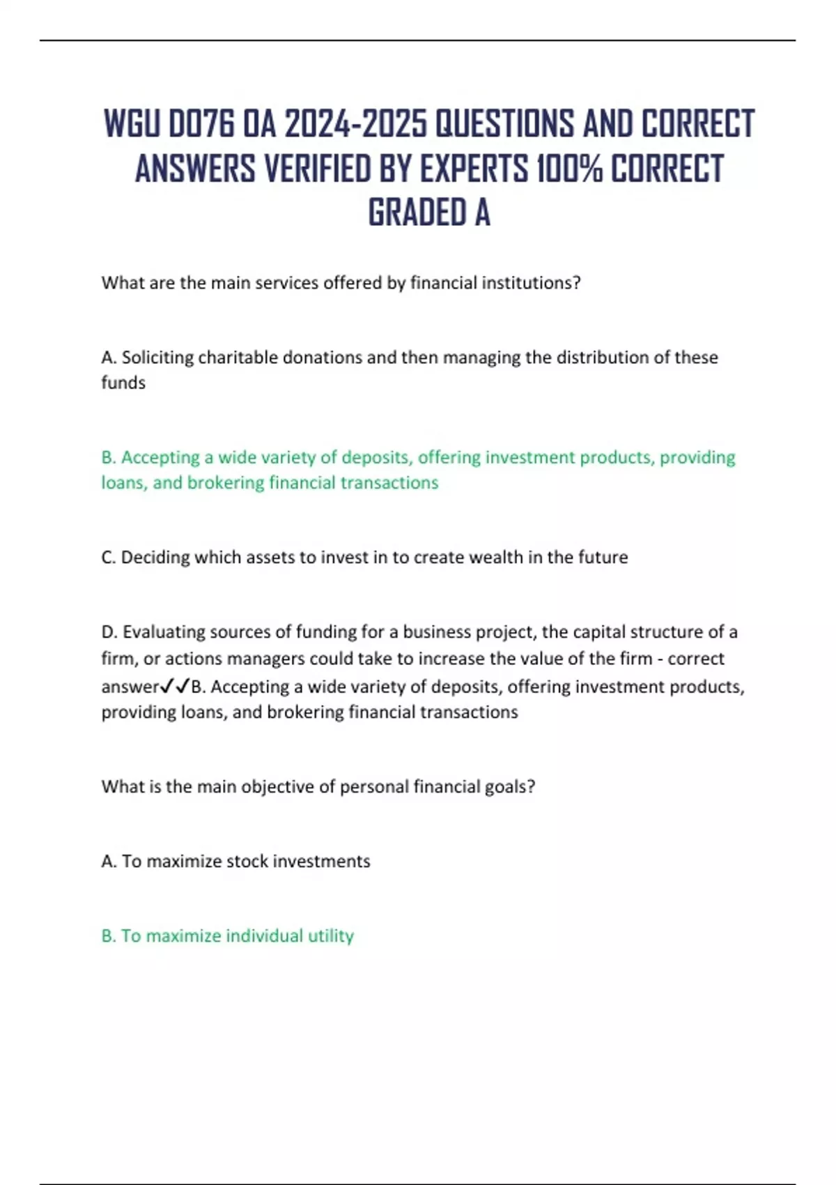 WGU D076 OA QUESTIONS AND CORRECT ANSWERS VERIFIED BY EXPERTS 100% CORRECT GRADED A