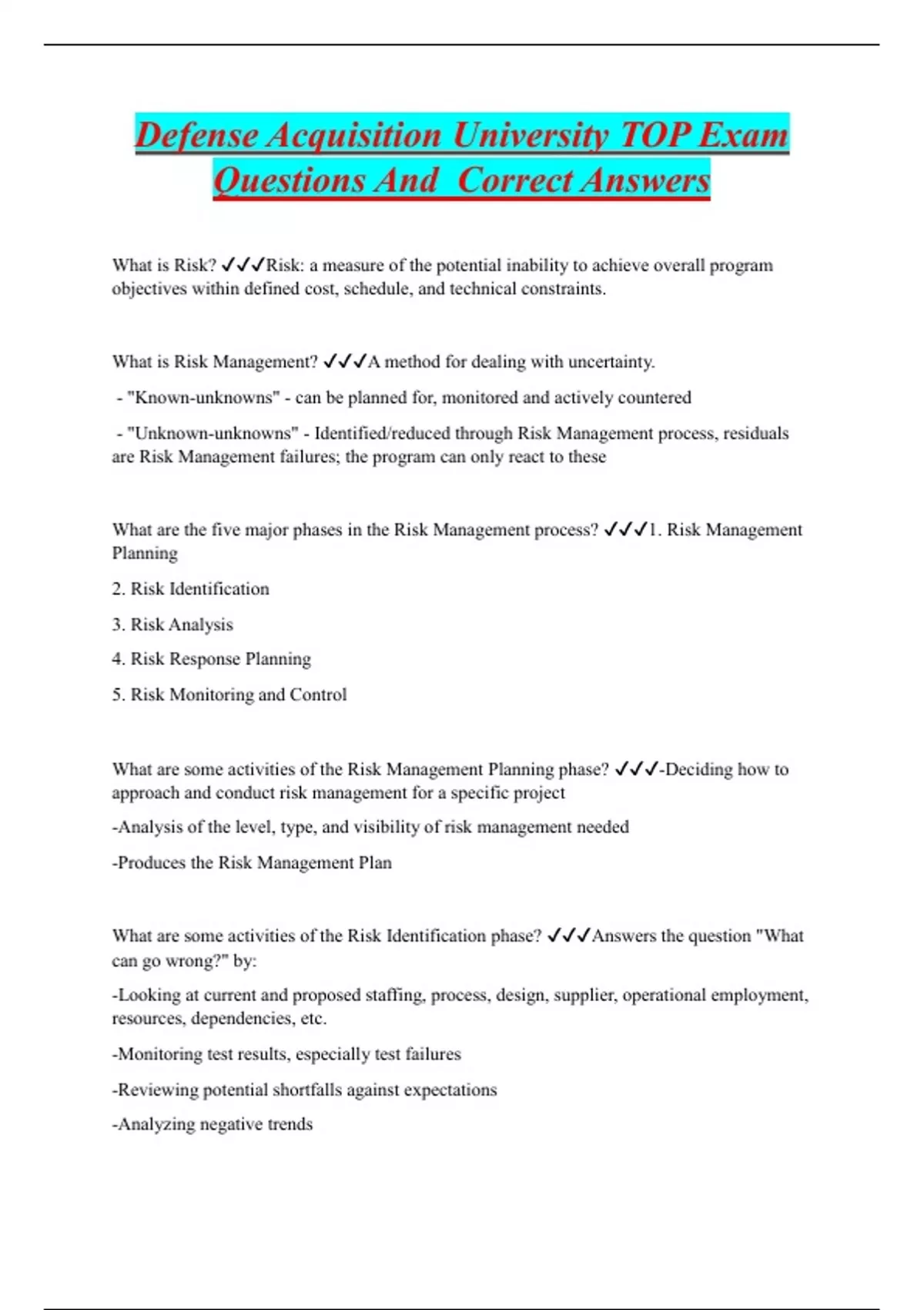 Defense Acquisition University TOP Exam Questions And Correct Answers