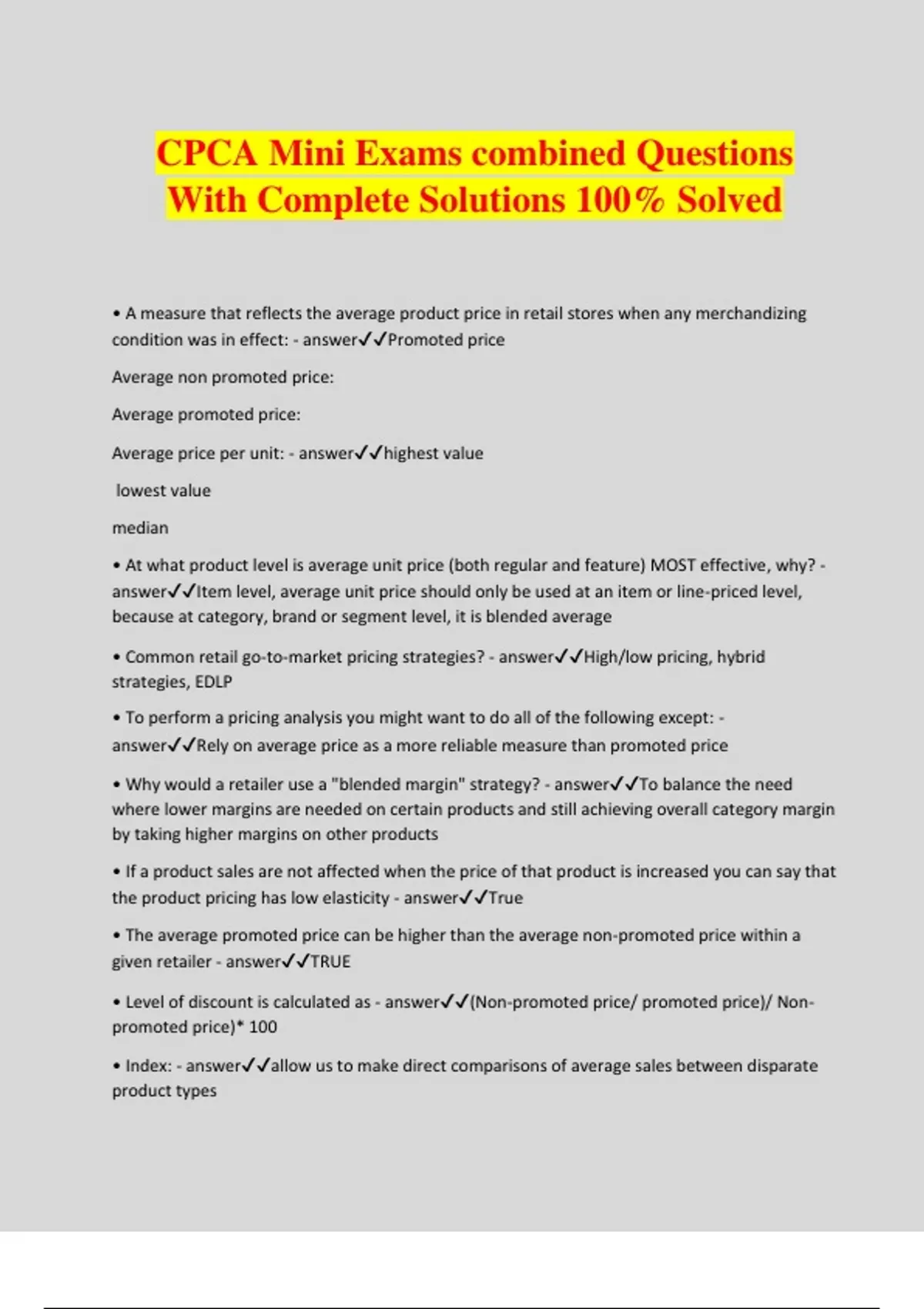 CPCA Mini Exams combined Questions With Complete Solutions 100% Solved