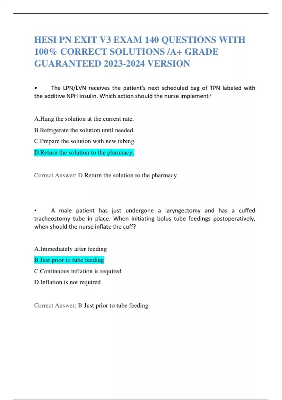 HESI PN EXIT V3 EXAM 140 QUESTIONS WITH 100% CORRECT SOLUTIONS A+ GRADE GUARANTEED VERSION