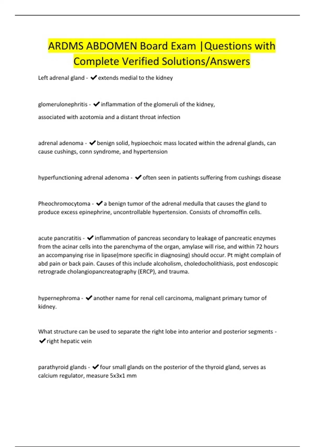 ARDMS ABDOMEN Board Exam |Questions with Complete Verified Solutions/Answers