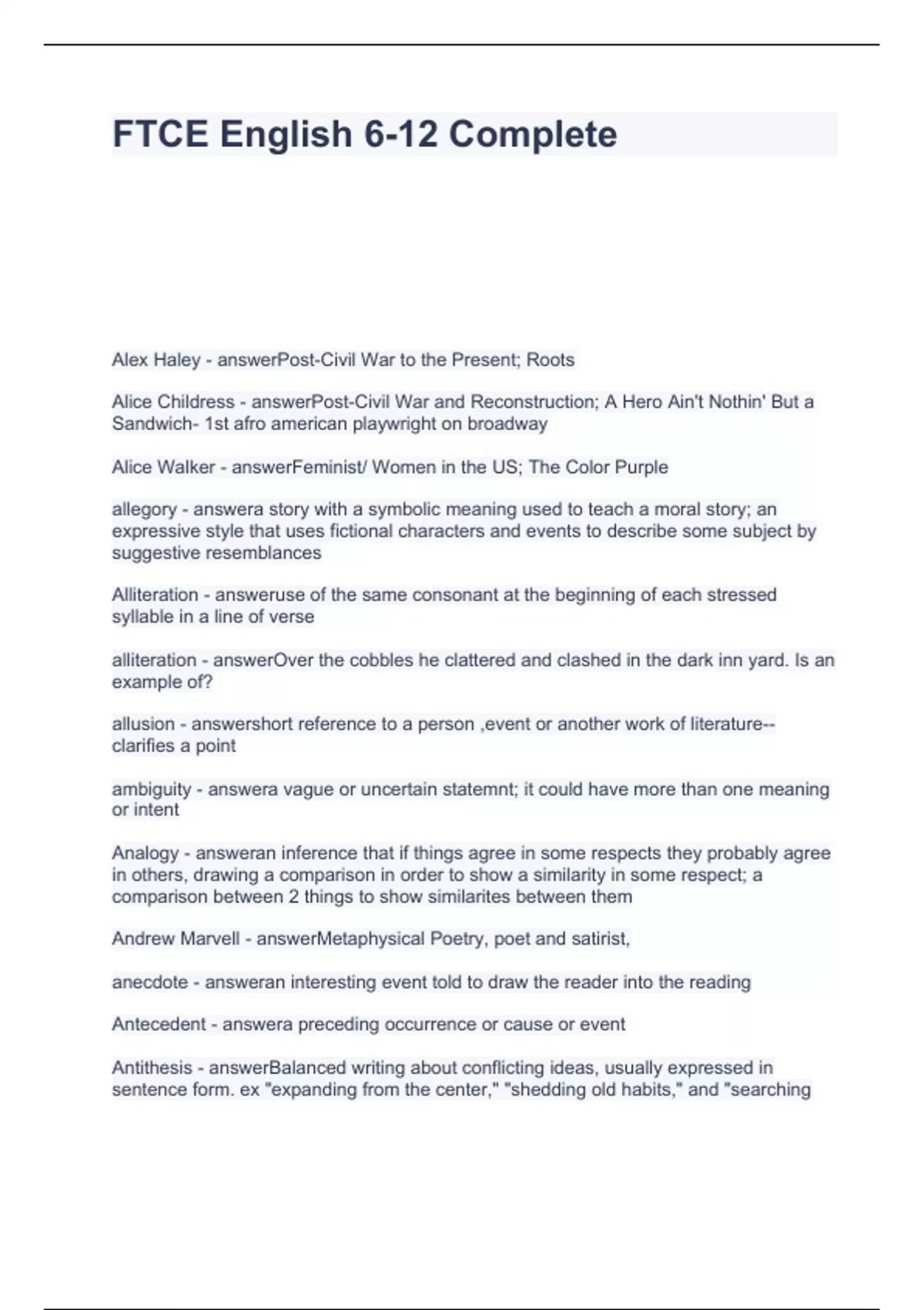 FTCE English 6 questions with solutions