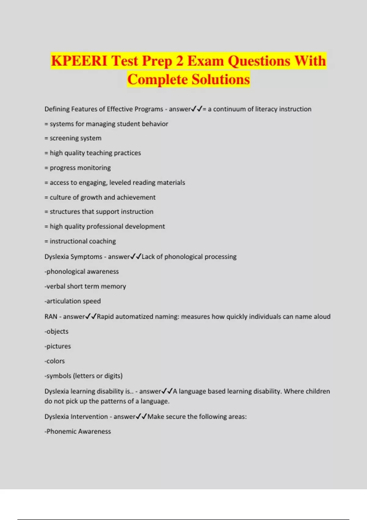 KPEERI Test Prep 2 Exam Questions With Complete Solutions
