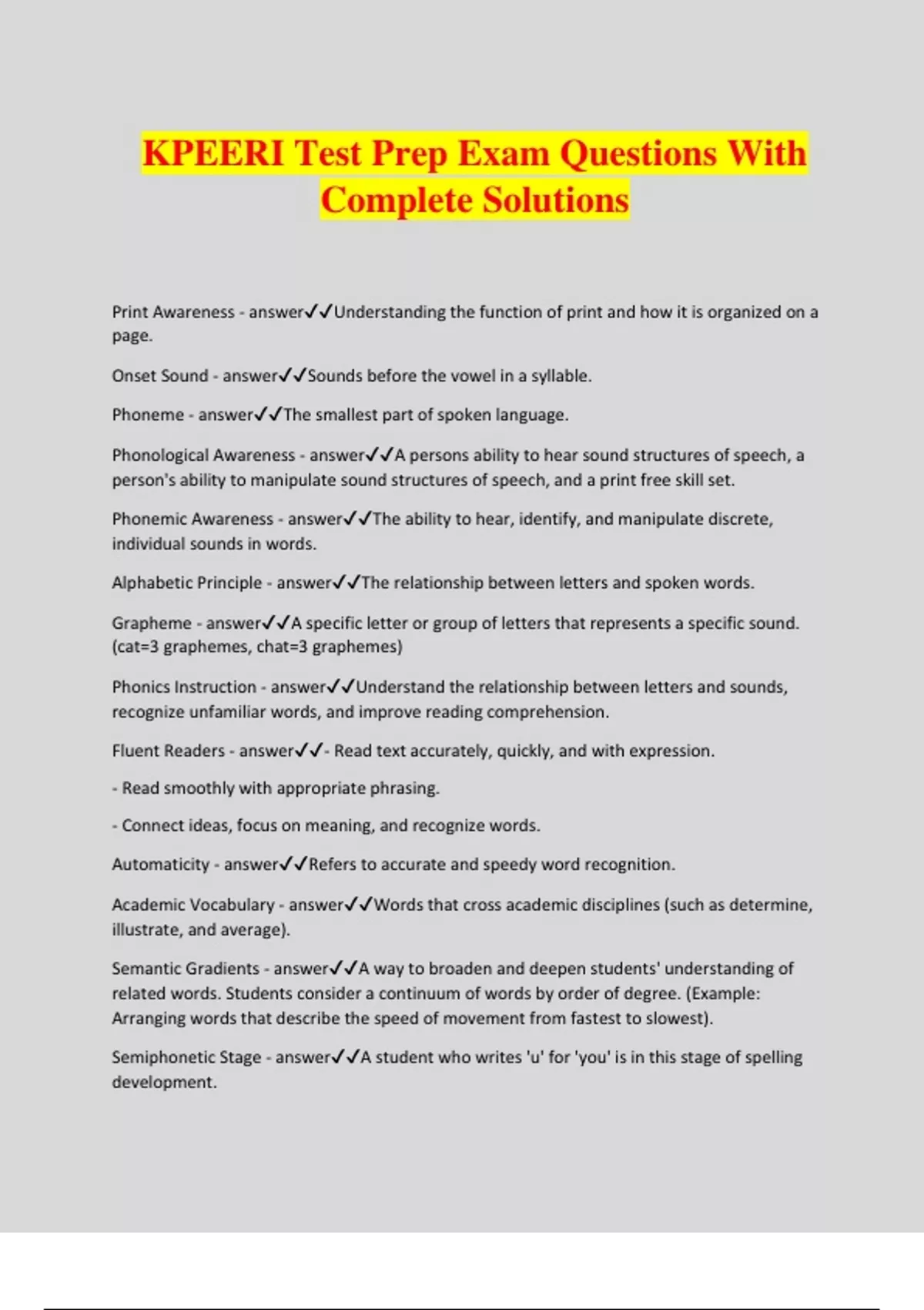 KPEERI Test Prep Exam Questions With Complete Solutions