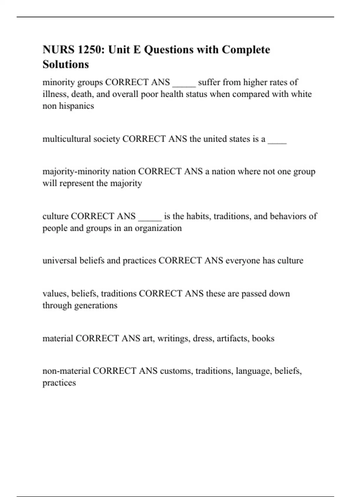 NURS 1250: Unit E Questions with Complete Solutions