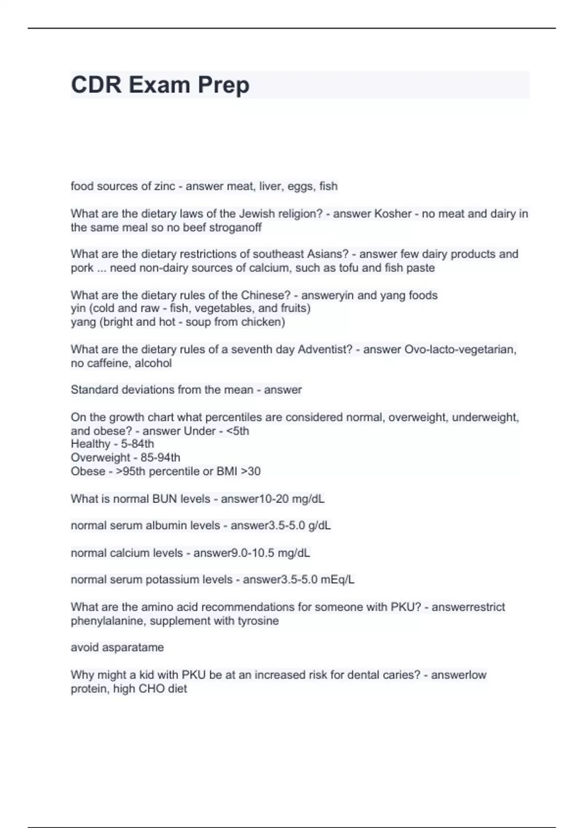 CDR Exam Prep Questions and Answers Graded A