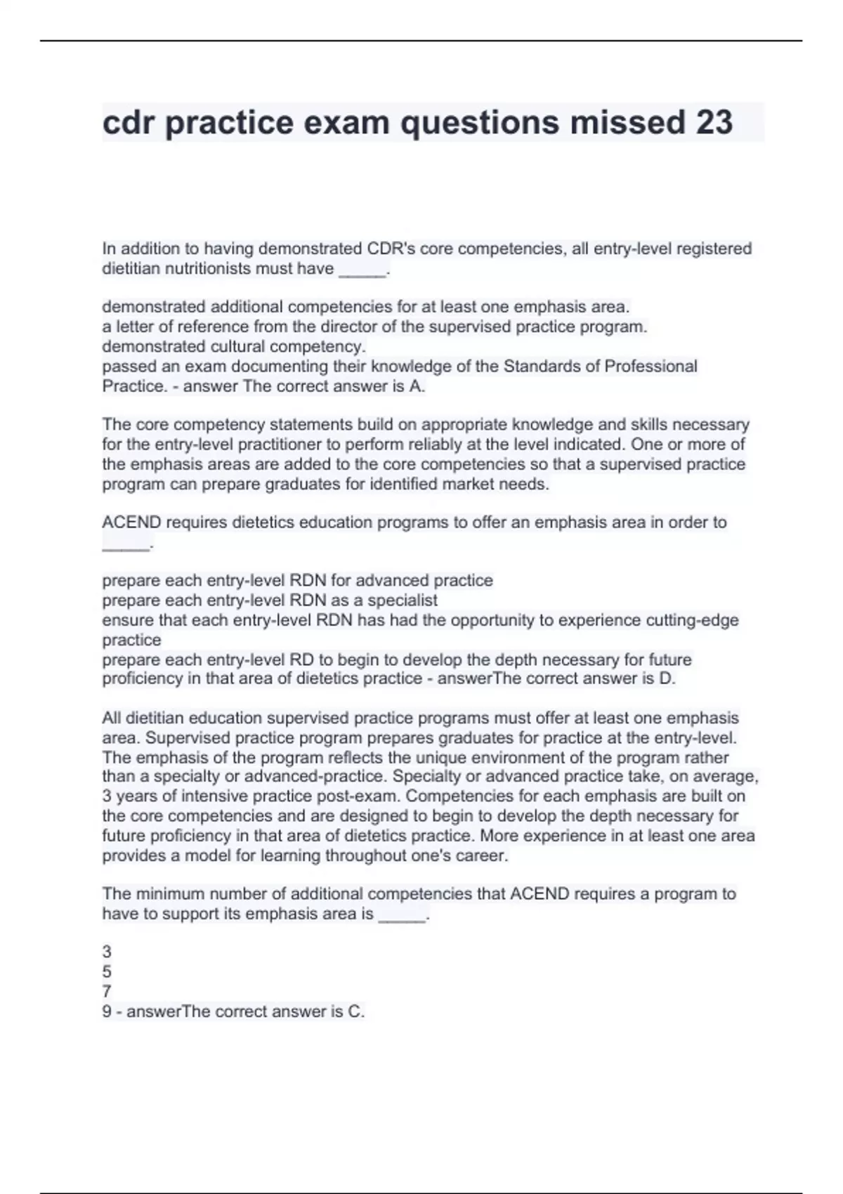 cdr practice exam questions missed 23 questions and answers