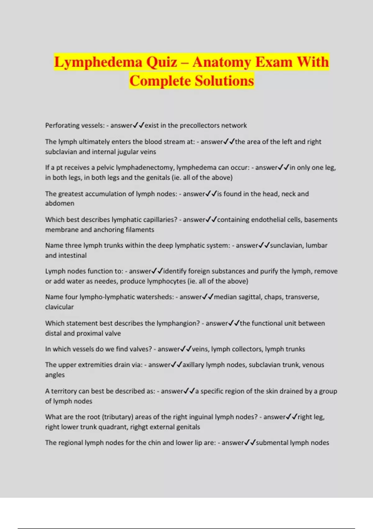 Lymphedema Quiz – Anatomy Exam With Complete Solutions