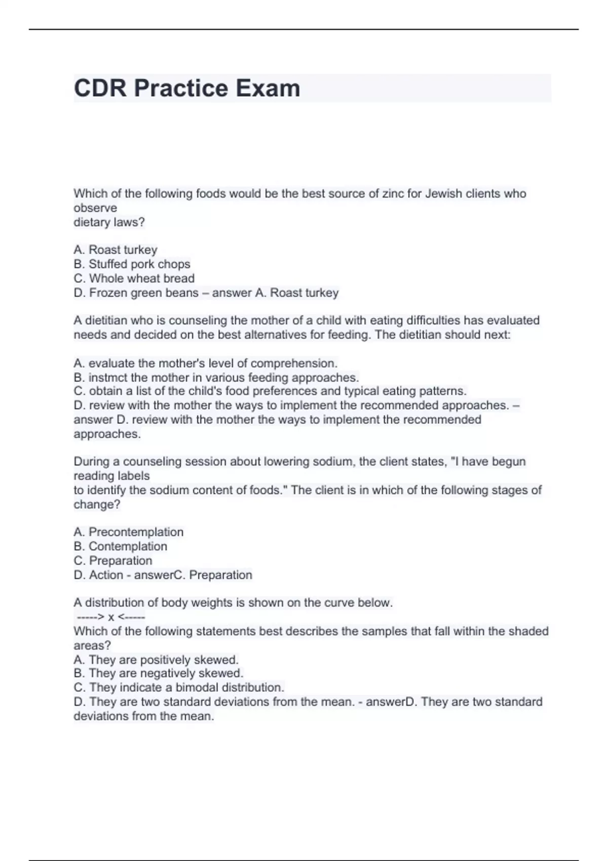 CDR Practice Exam Questions and Answers Graded A