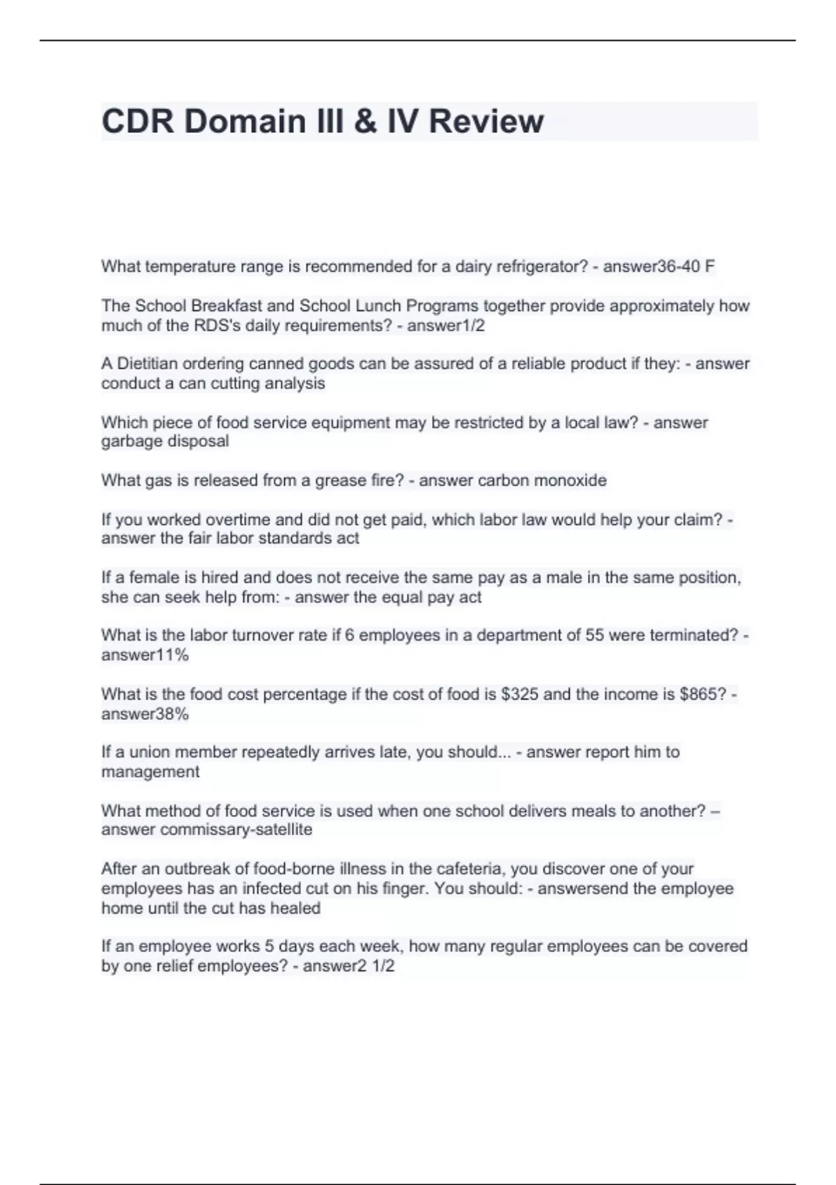 CDR Domain III & IV Review Questions and Answers 100% Accurate