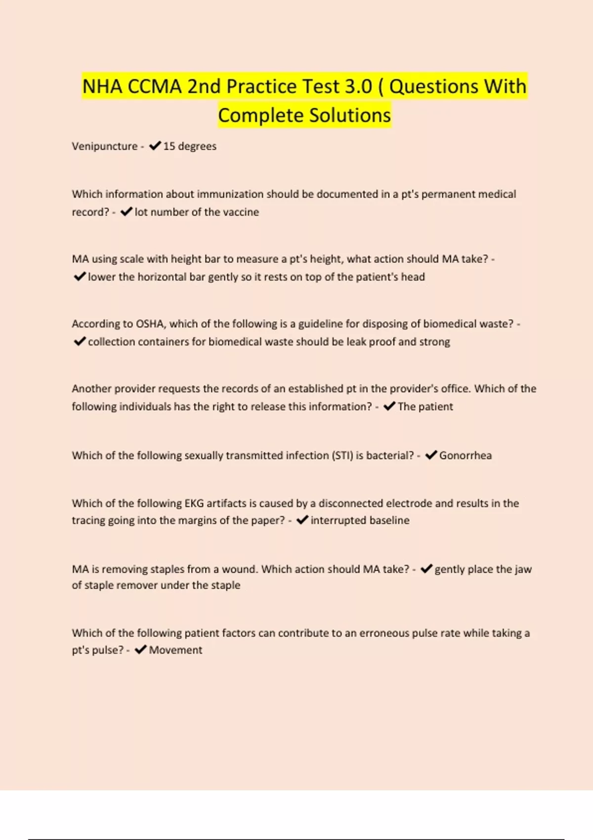 NHA CCMA 2nd Practice Test 3.0 ( Questions With Complete Solutions